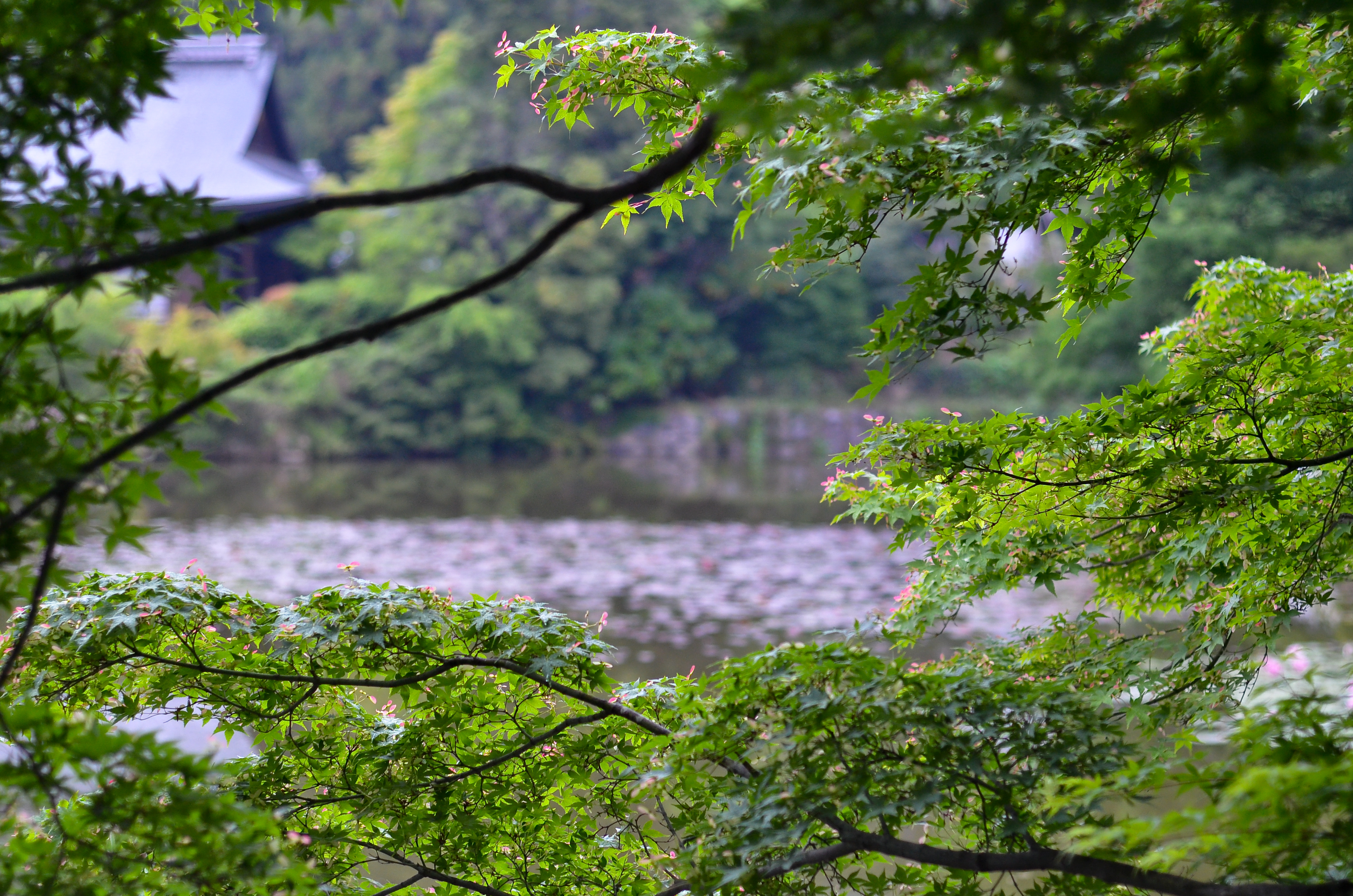 Once we walked through, we passed a large pond and came to a great, red gate.