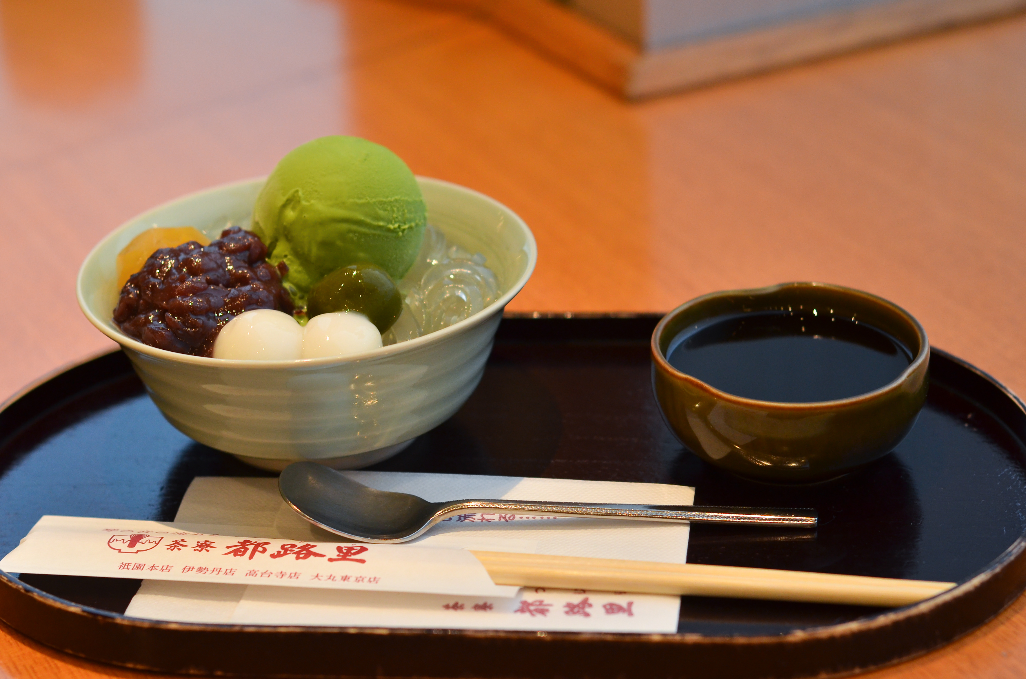 We were still kind of hungry after that, so we looked for a green tea dessert shop that my mom had heard about. It turned out to be on the tenth floor, and we were able to sit in front of a large window overlooking the front of the station!