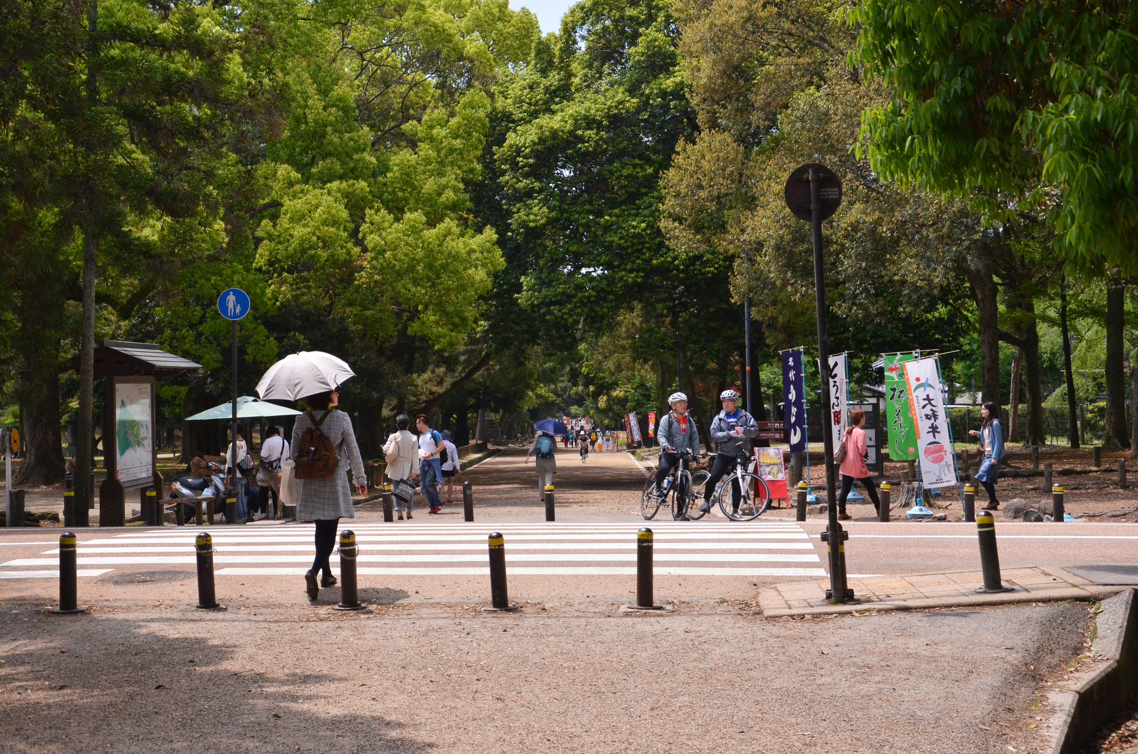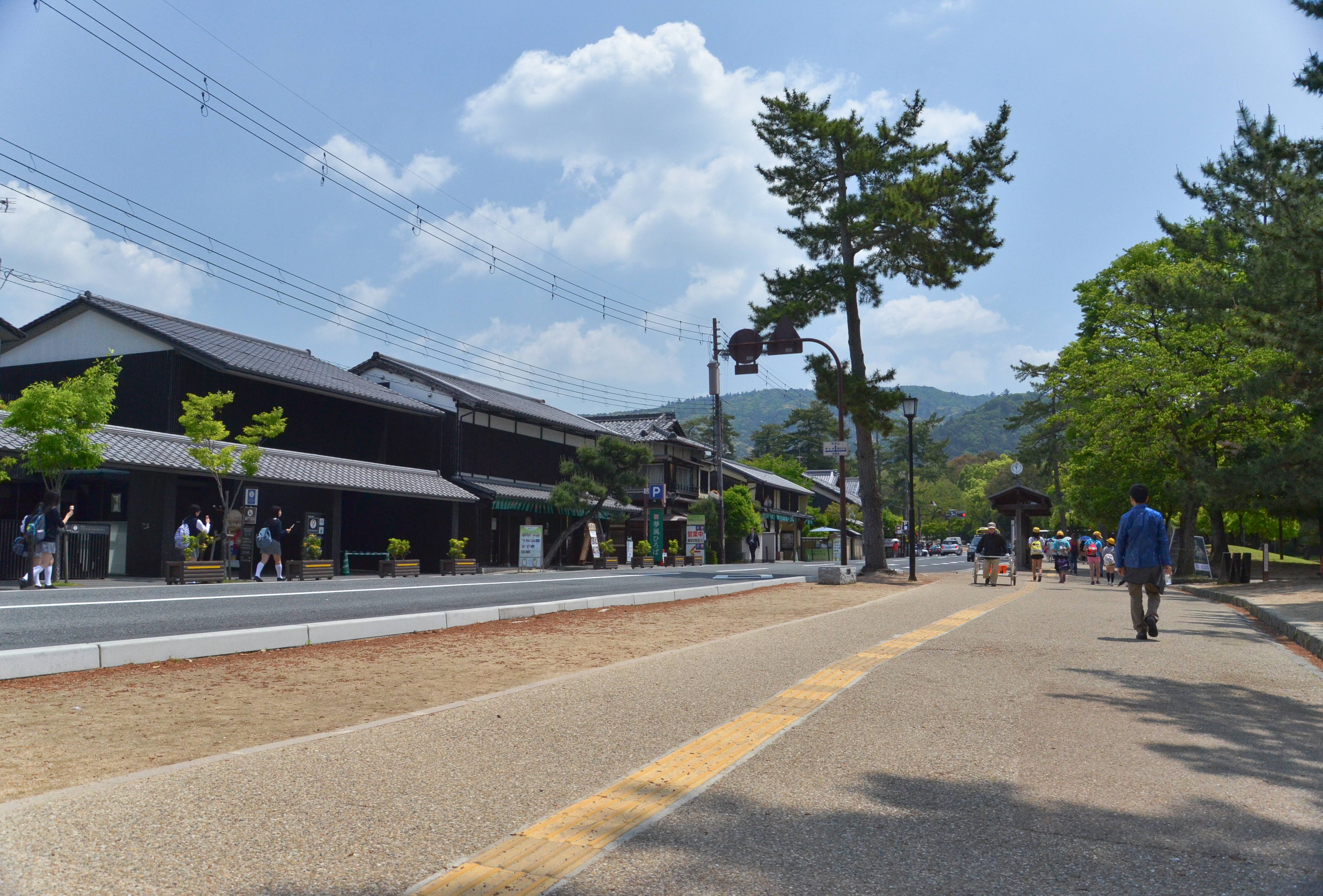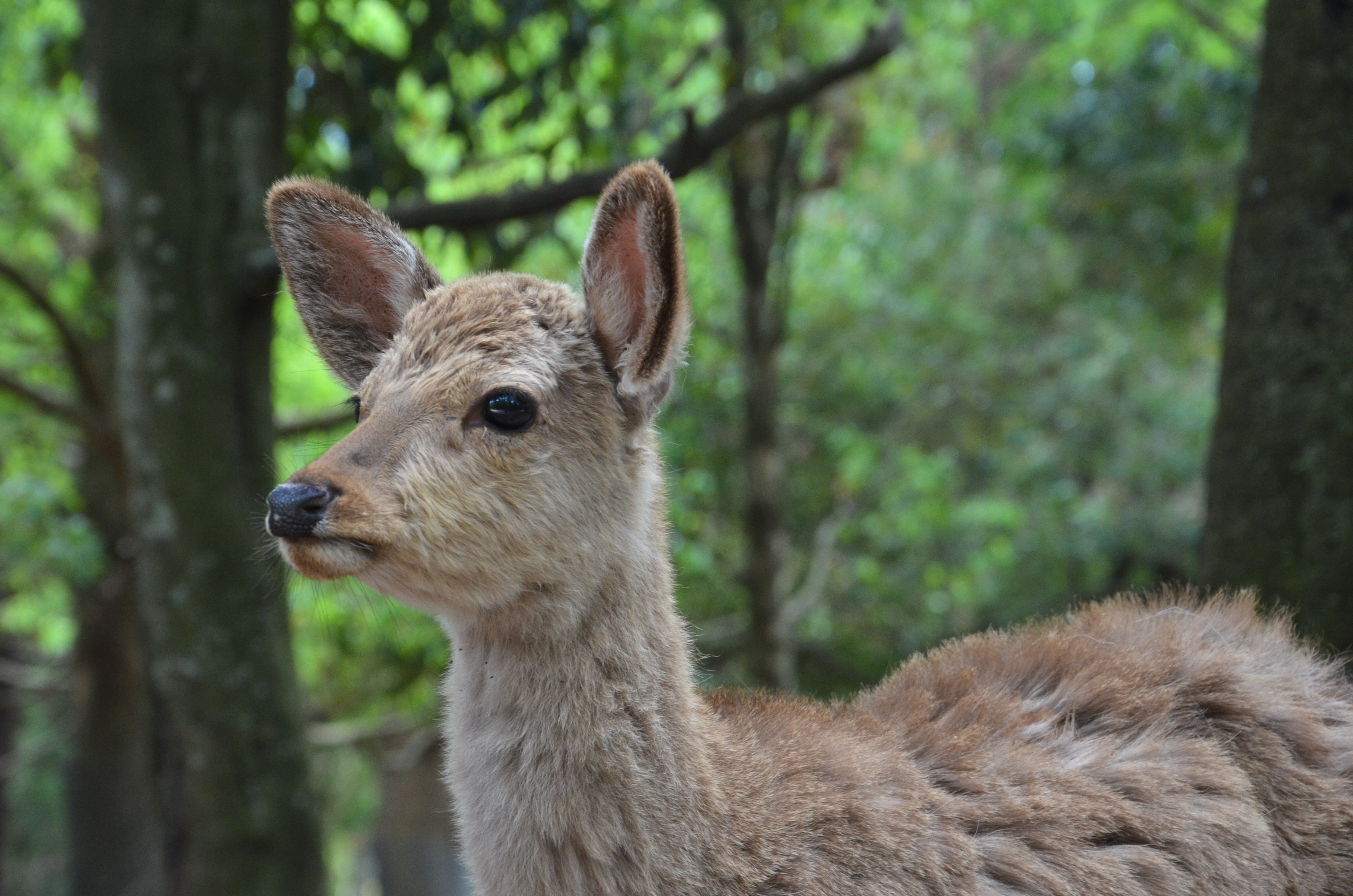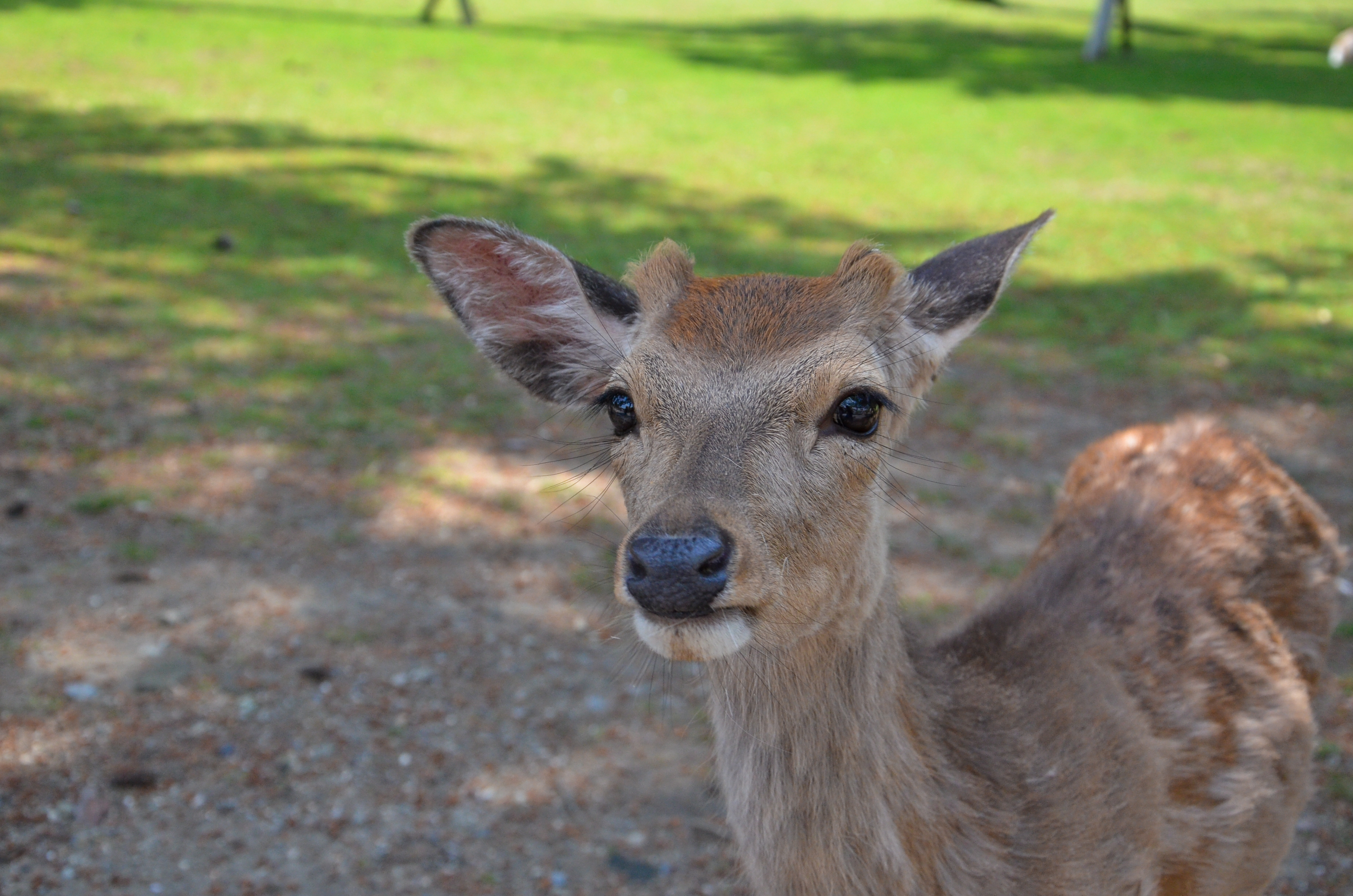 Nara was the last stop, so we didn't have to worry about when to get off. The city outside of the station looked really nice; there were a lot more trees and there weren't as many people in business suits. Nara Park was close by and we walked there in only ten minutes. That was also when we spotted our first Nara deer...