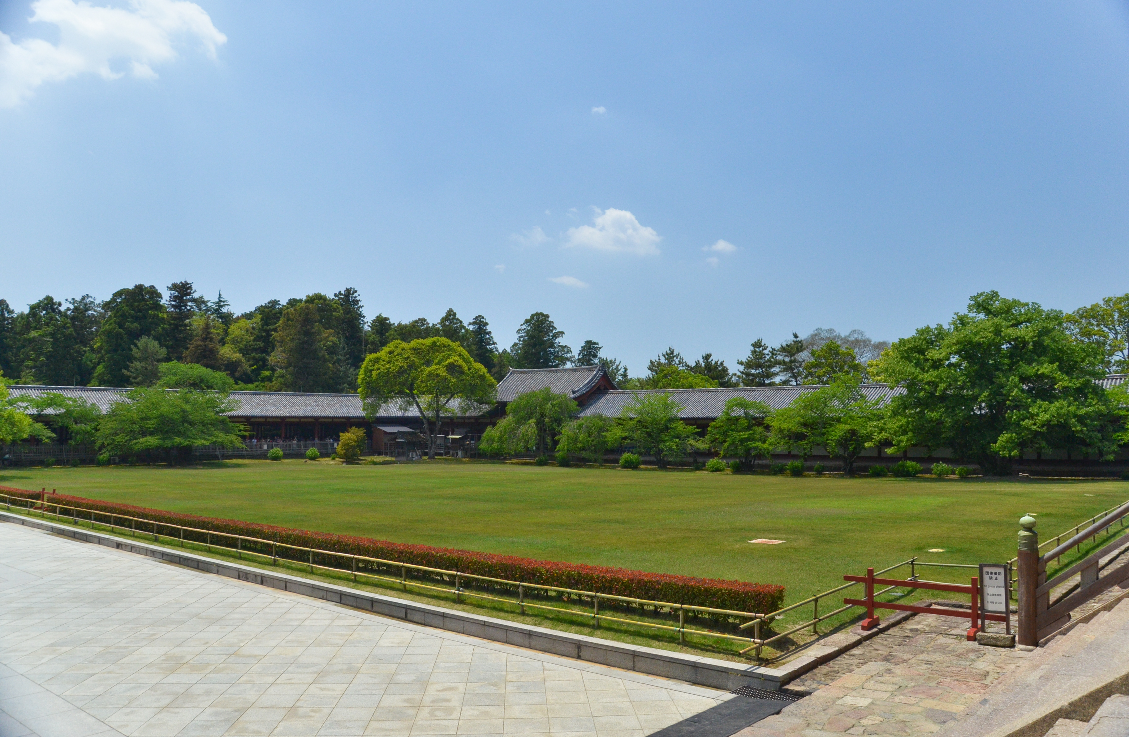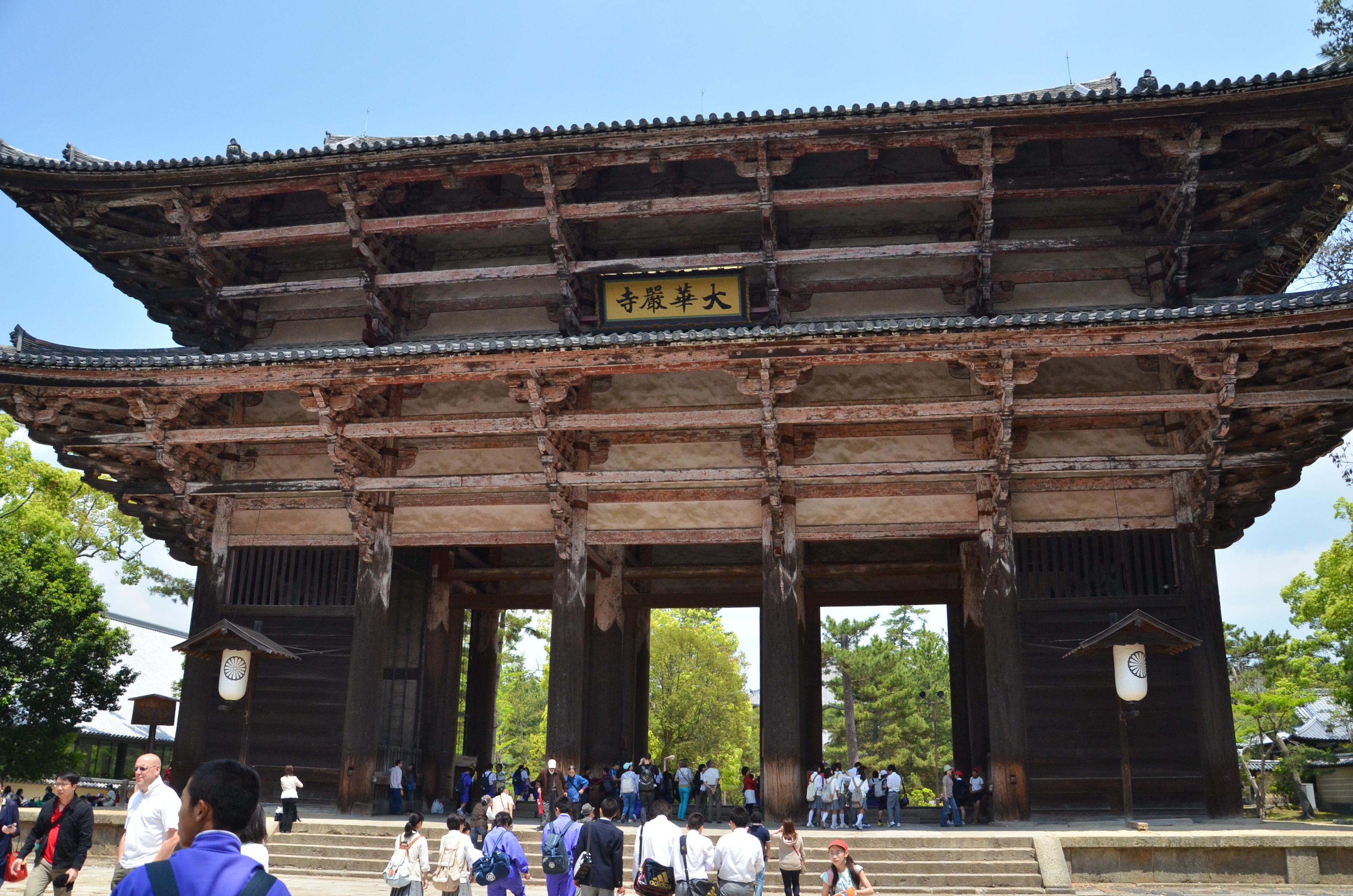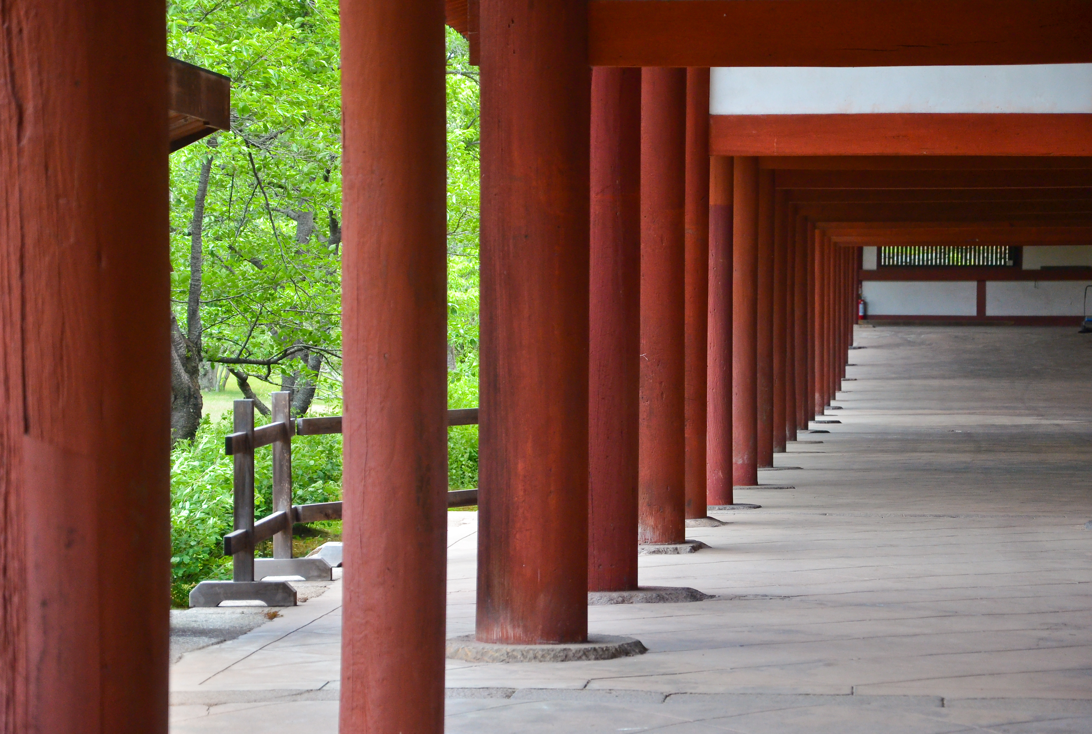 Behind this long gate was the largest temple I've ever been to. The sheer size of the structure along with the sprawling green yards and blue sky created a dream-like scene to me.