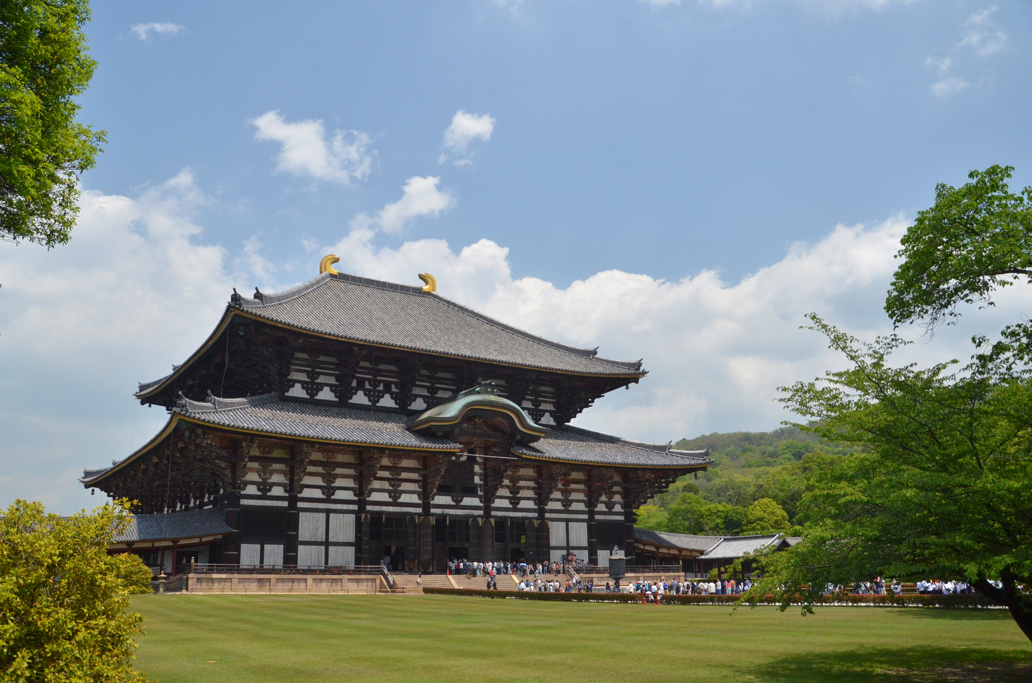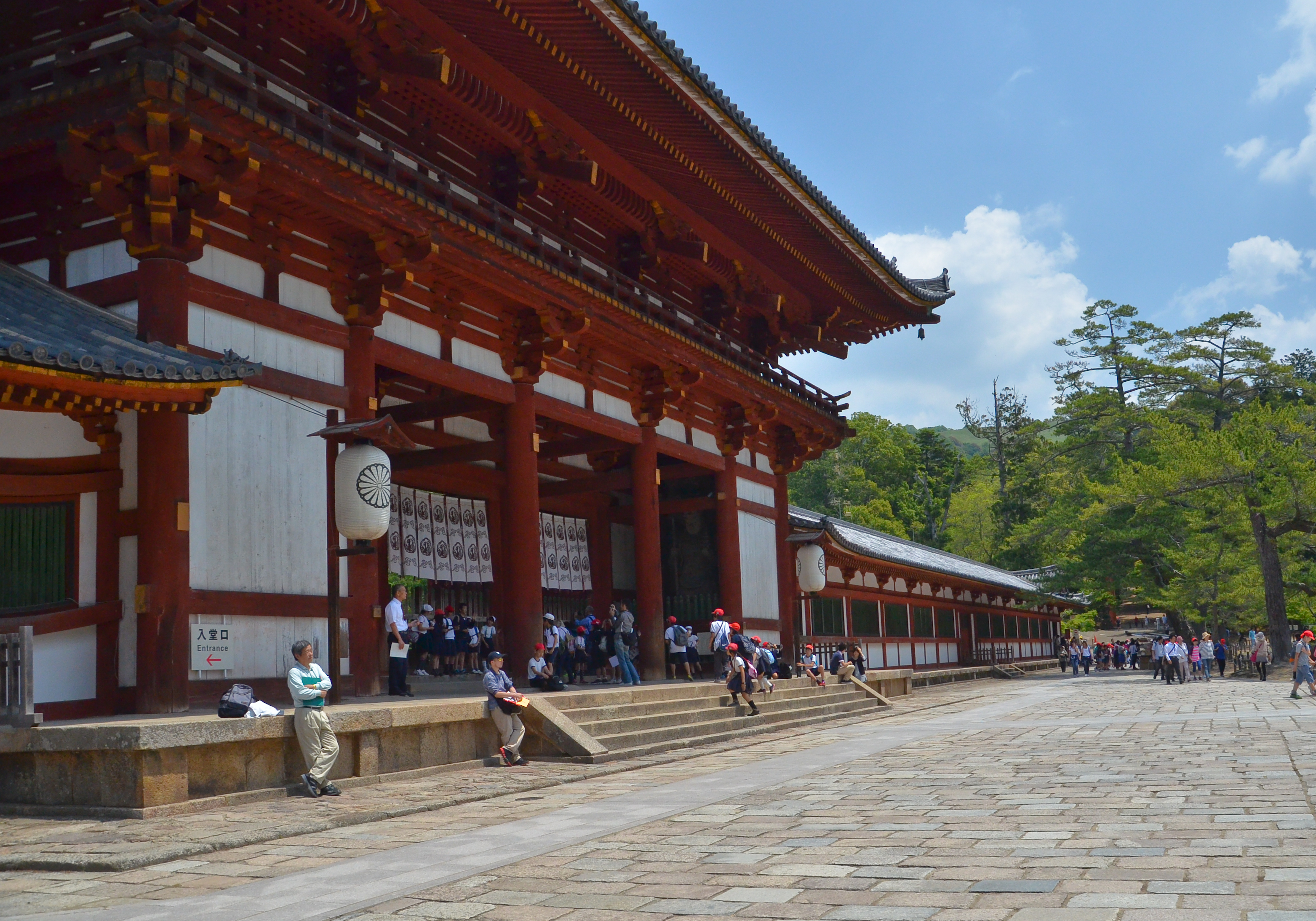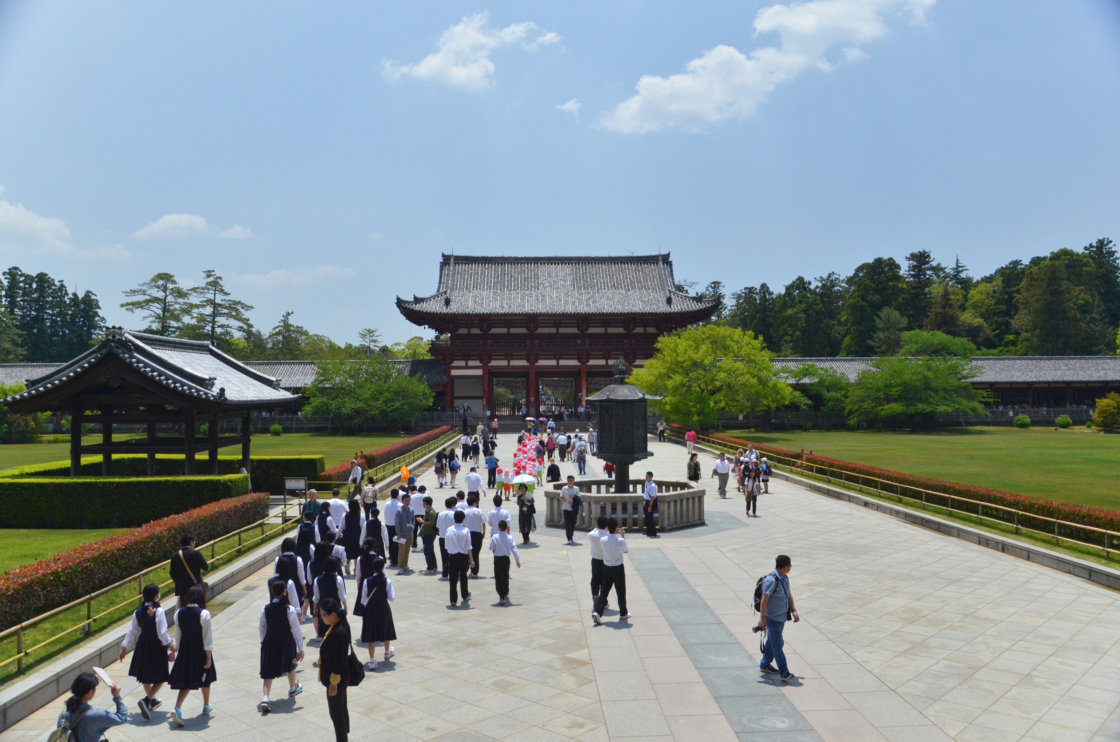Behind this long gate was the largest temple I've ever been to. The sheer size of the structure along with the sprawling green yards and blue sky created a dream-like scene to me.