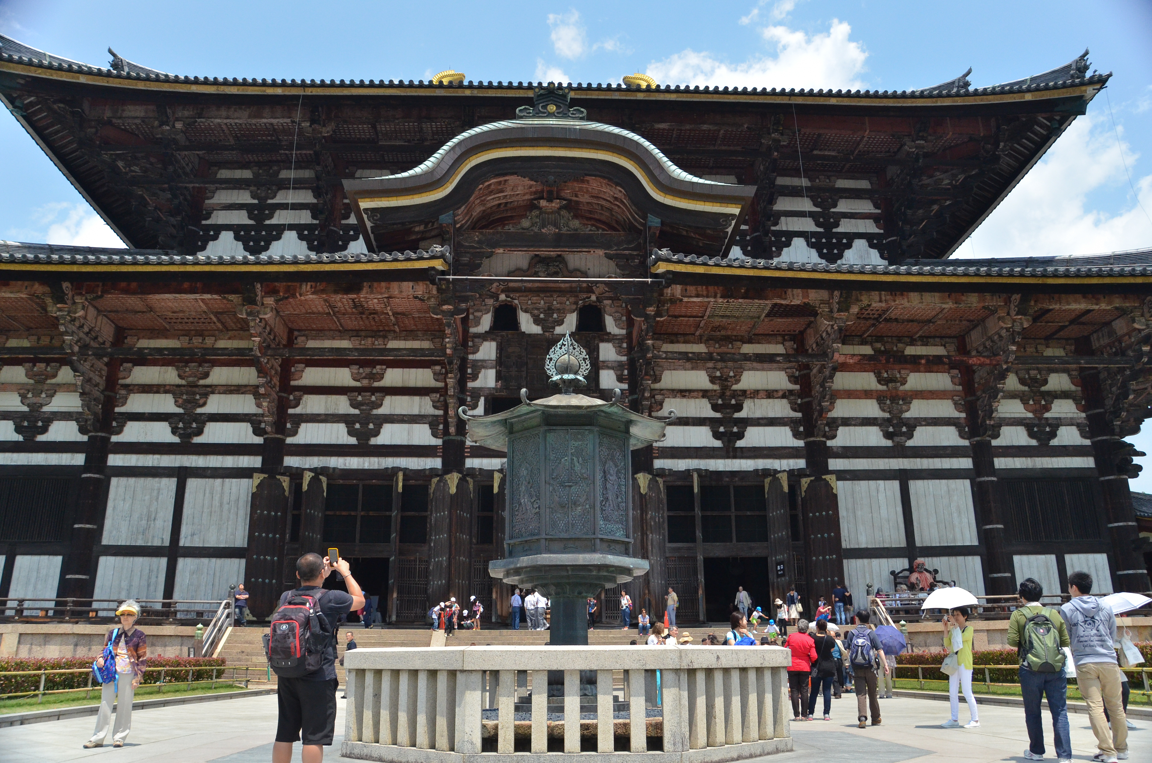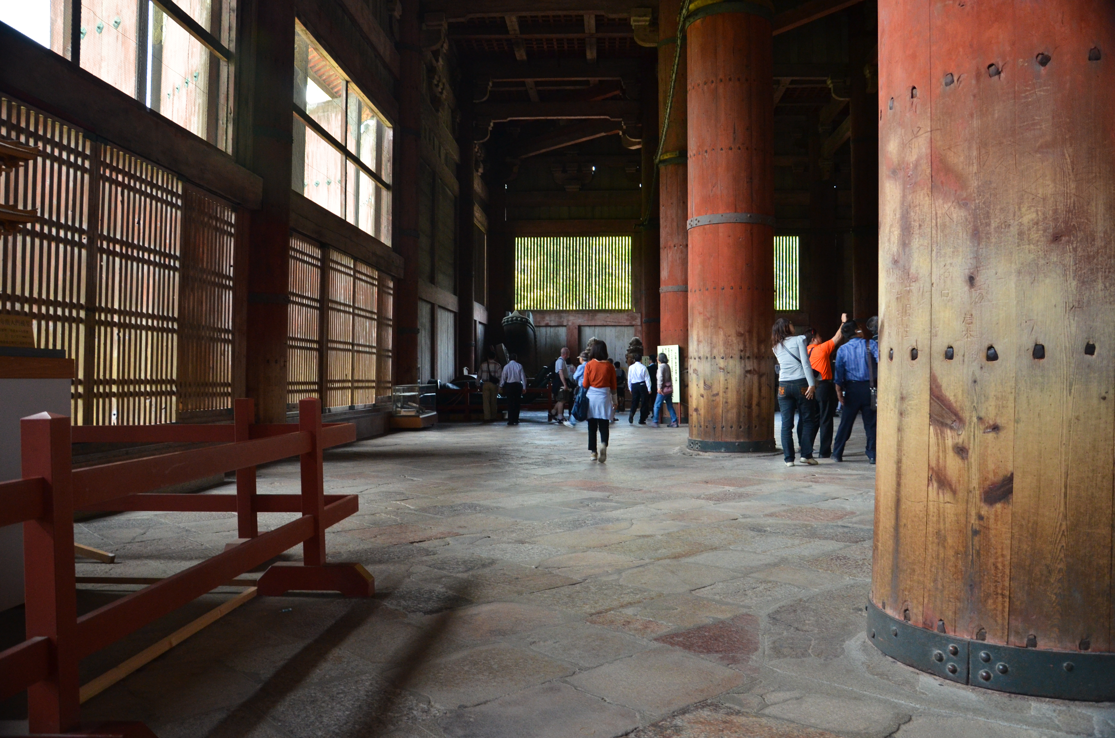 Our first stop was at Todaiji temple. In addition of tons of people, there were also herds of deer lying in the shade nearby or weaving through the crowd to get to people with deer cookies.