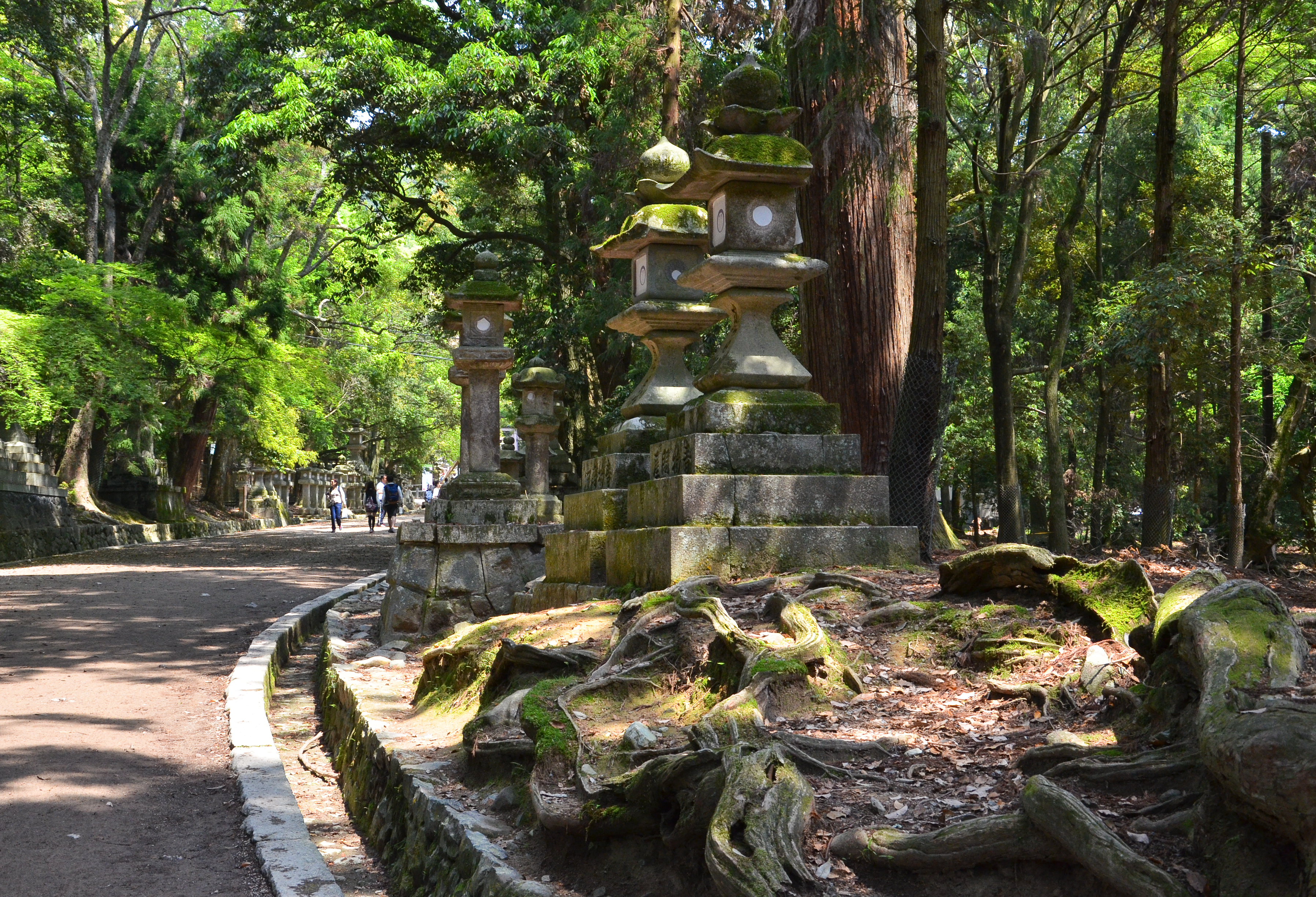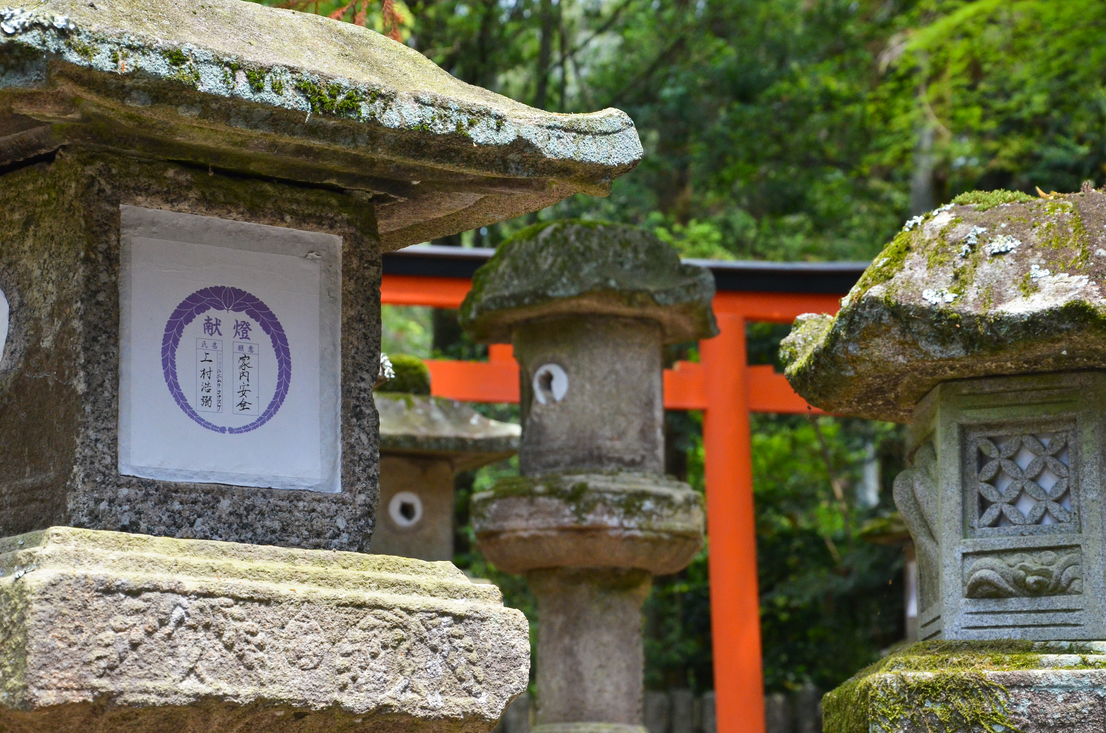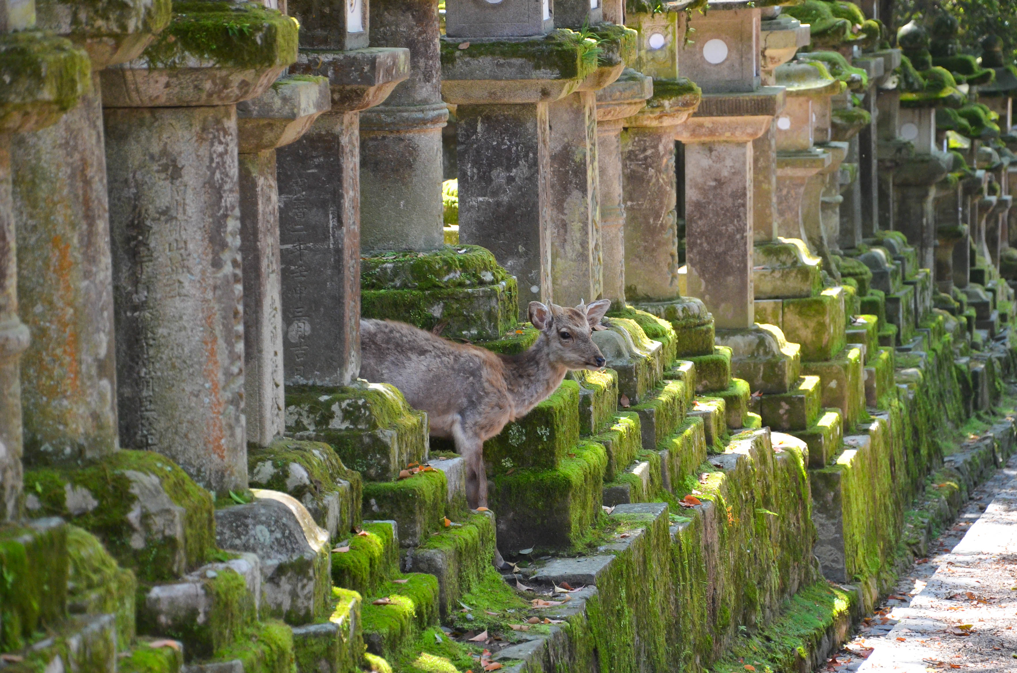 The path to Kasuga Taisha wound through a forest of tall, dark trees. Initially, there were very few lanterns, but gradually they appeared in larger and larger numbers. Even then, there were a lot of deer. They wove in and out between the lanterns and trees, either following the flow of people, or stopping to rest under the trees.