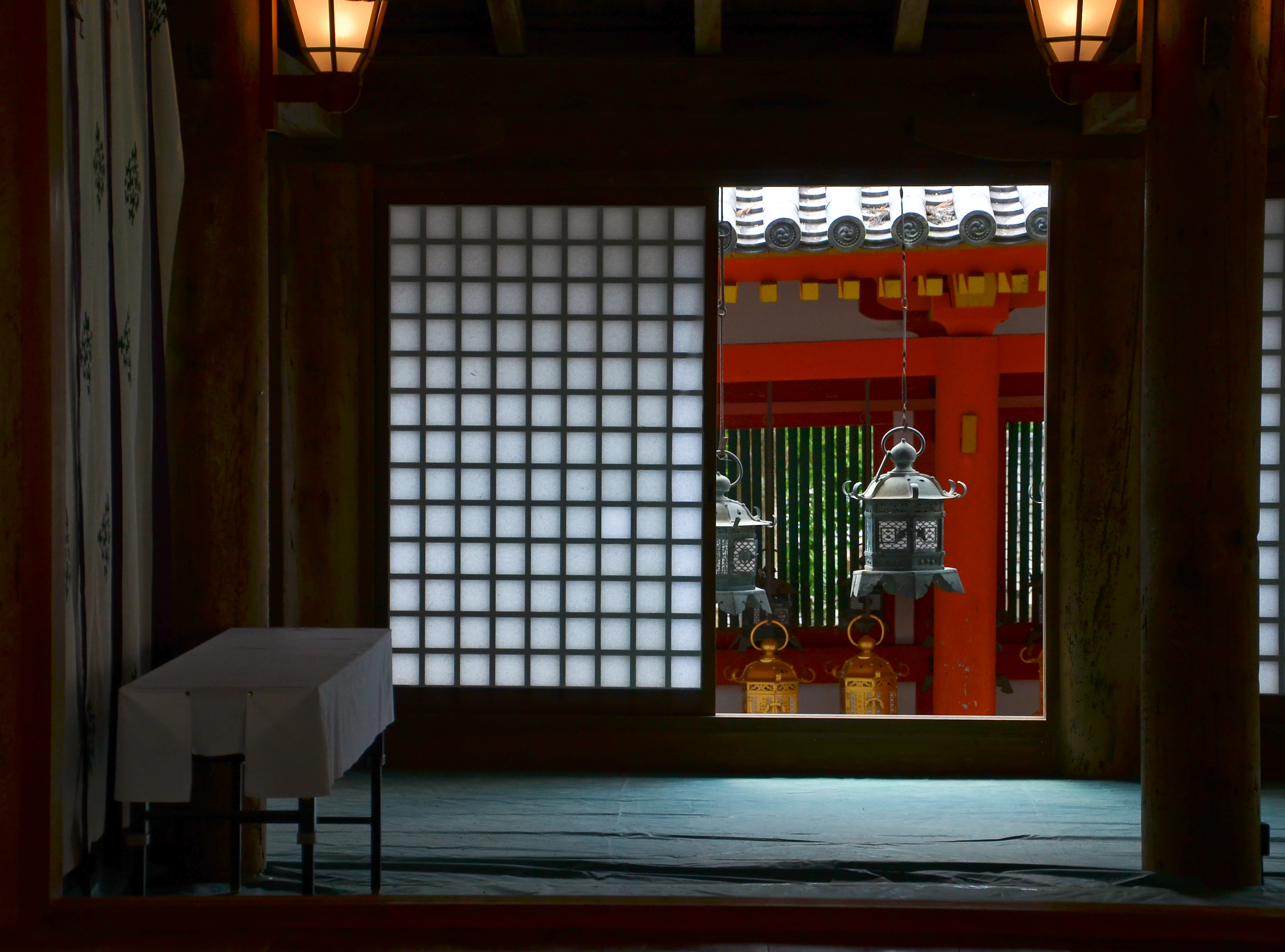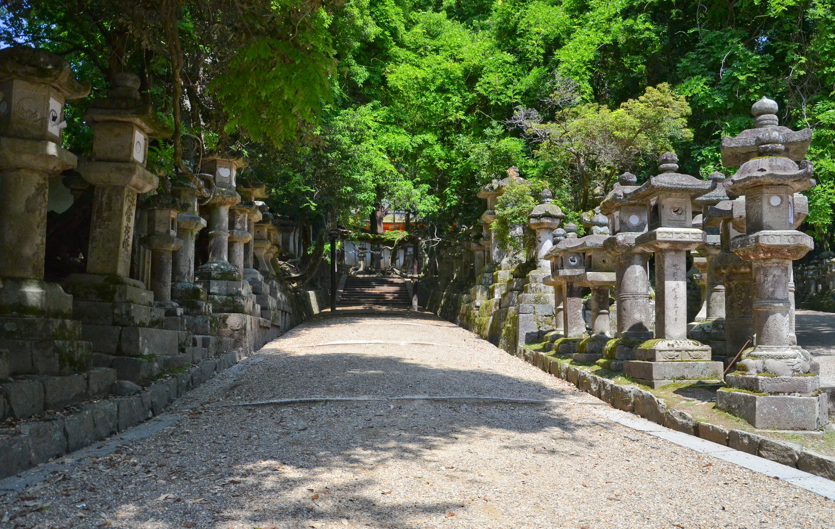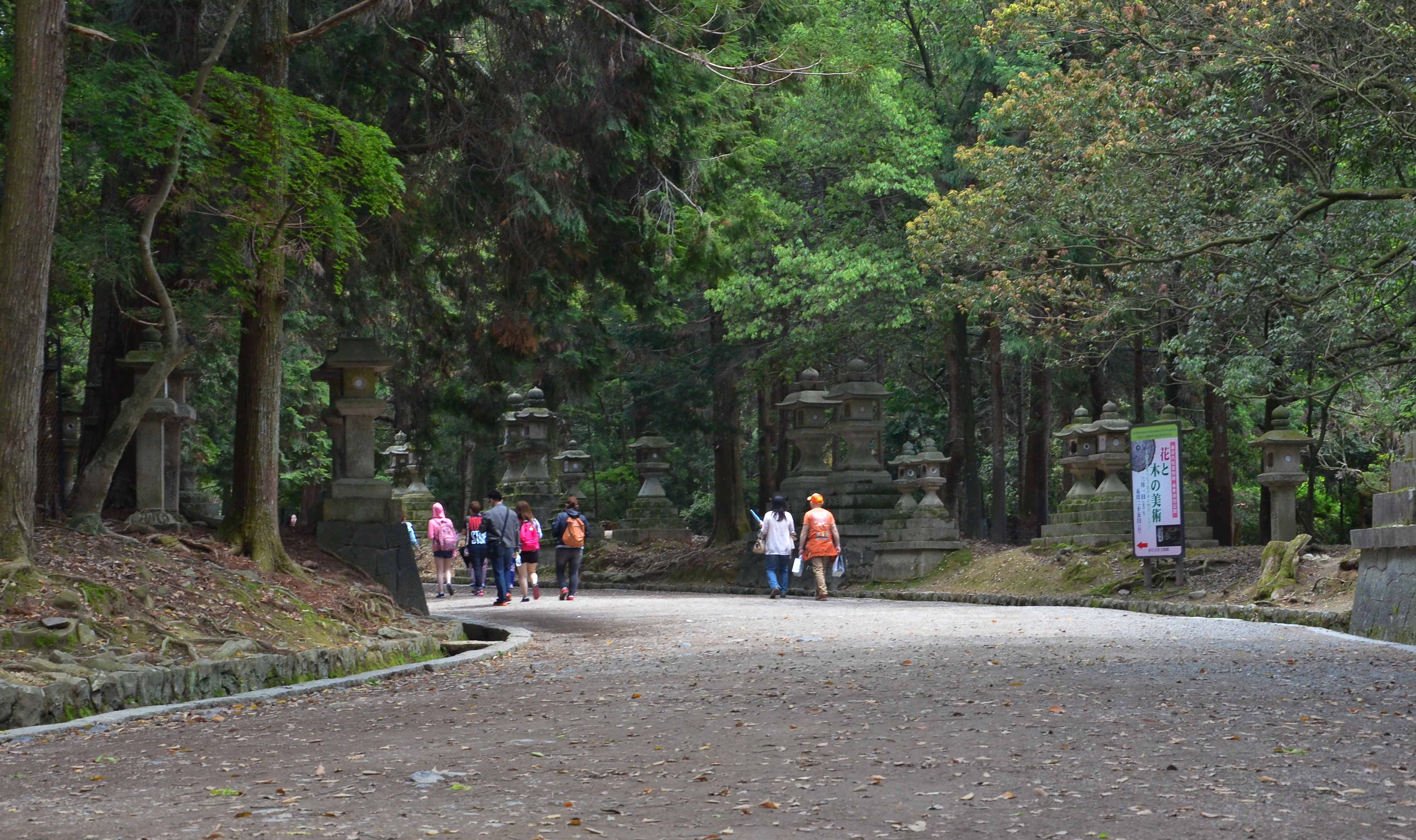 The path to Kasuga Taisha wound through a forest of tall, dark trees. Initially, there were very few lanterns, but gradually they appeared in larger and larger numbers. Even then, there were a lot of deer. They wove in and out between the lanterns and trees, either following the flow of people, or stopping to rest under the trees.