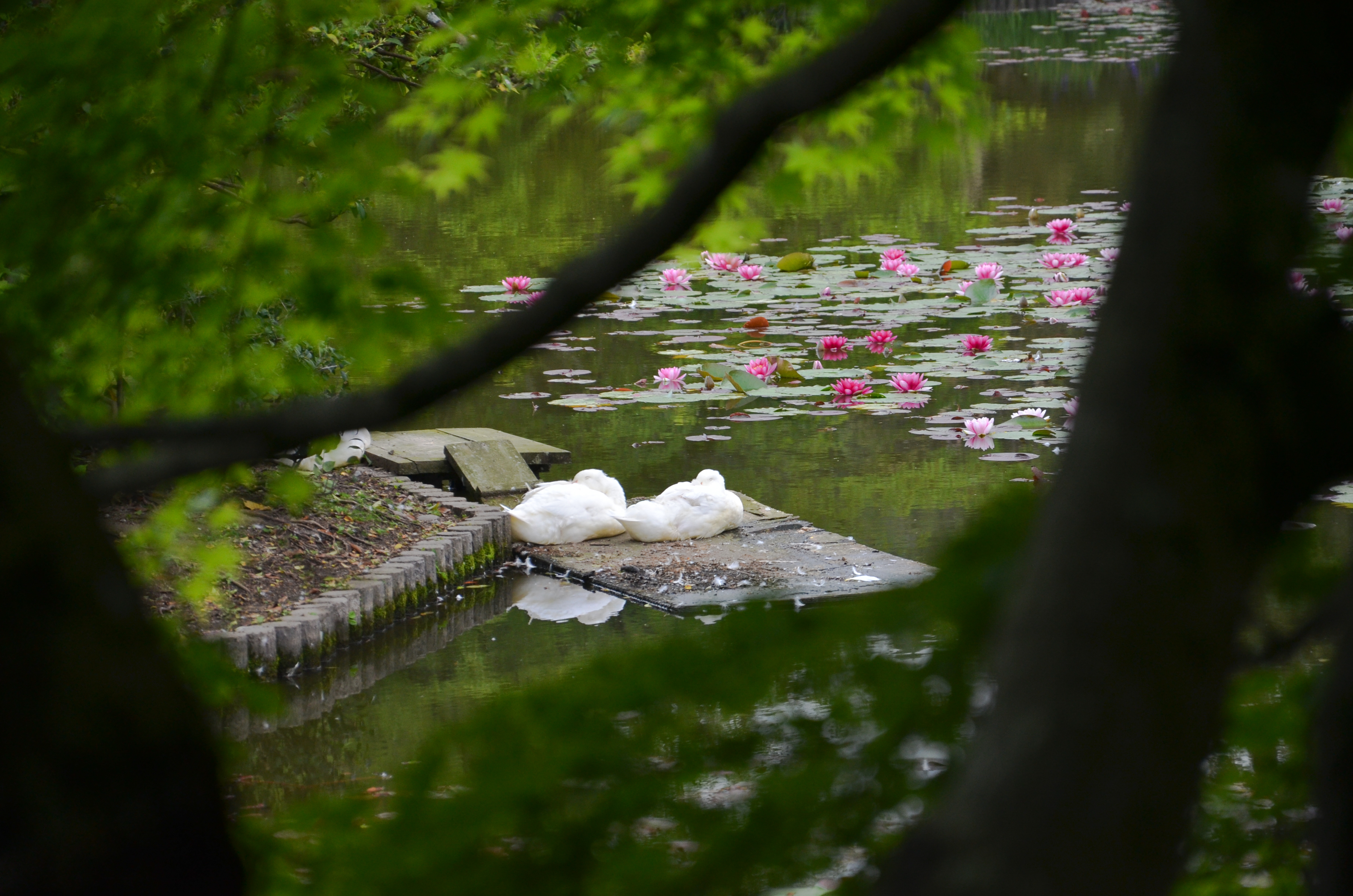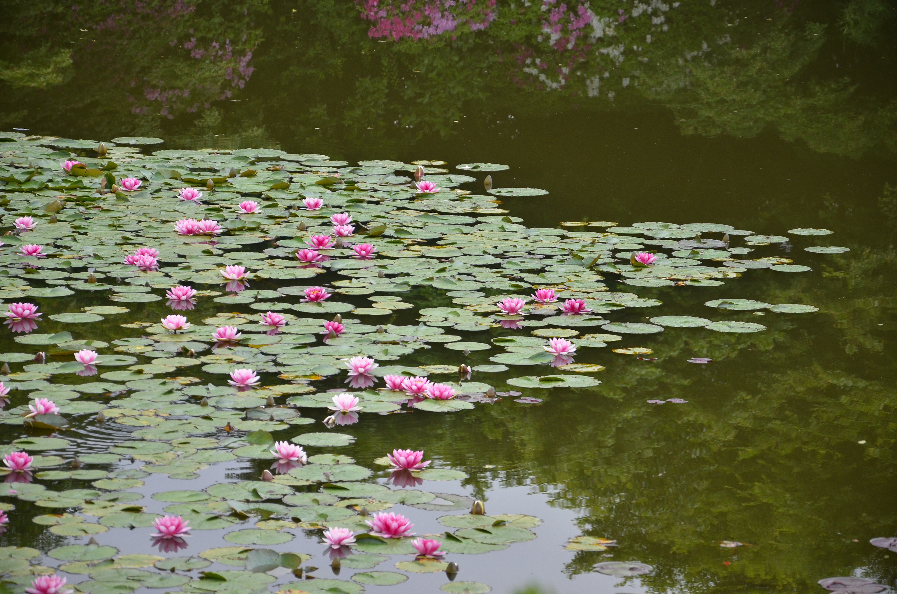 Along the way, there was a large pond that was blanketed with beautiful pink/magenta water lilies. The path itself was surrounded on either side with lush greenness.