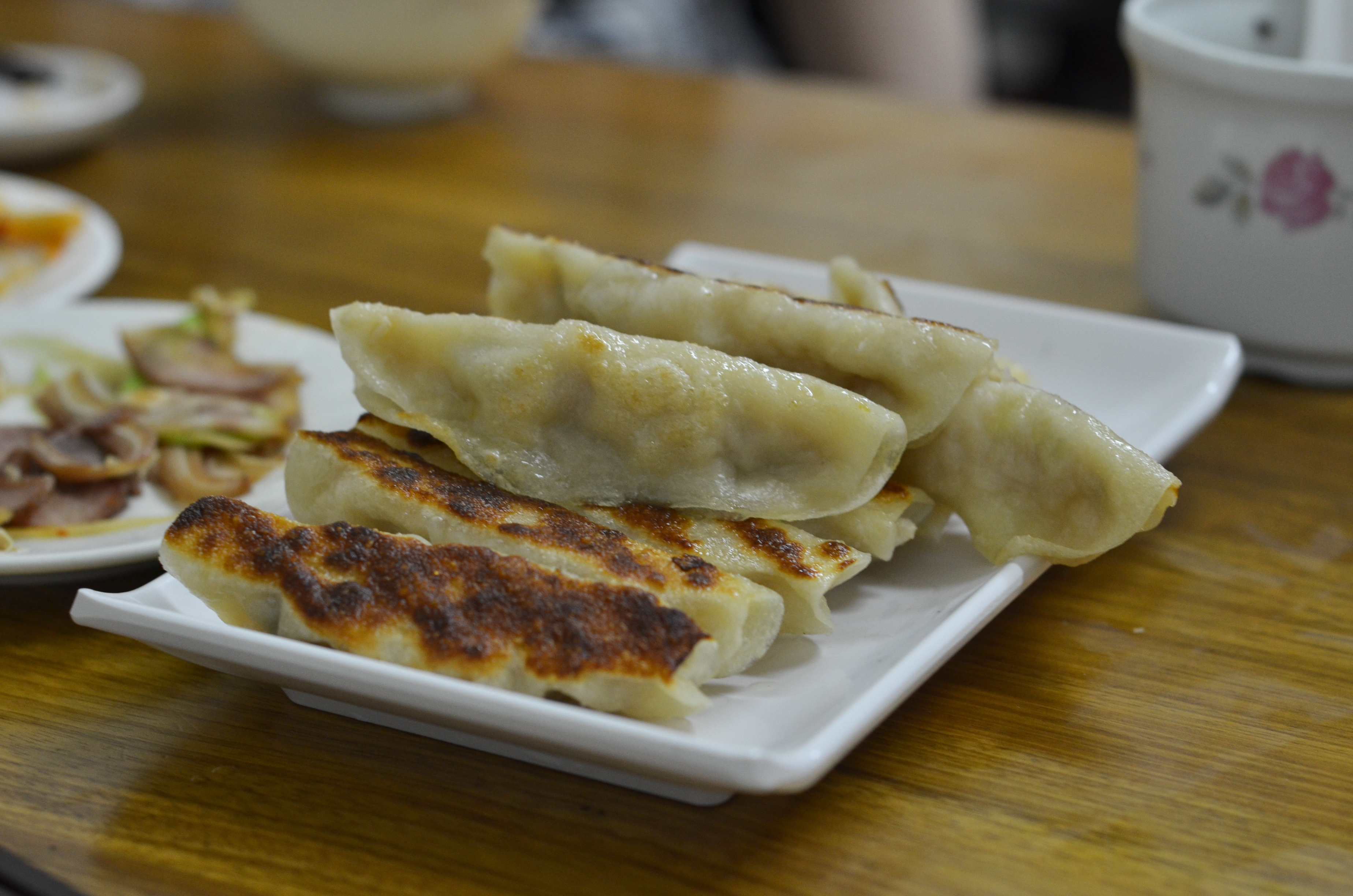 Towards evening, my cousins came home from school and we all went out for dinner at one of the many small shops. This shop's specialties was food involving meat and dough, such as 小籠包, scallion pancake (蔥油餅), and, pot-stickers.