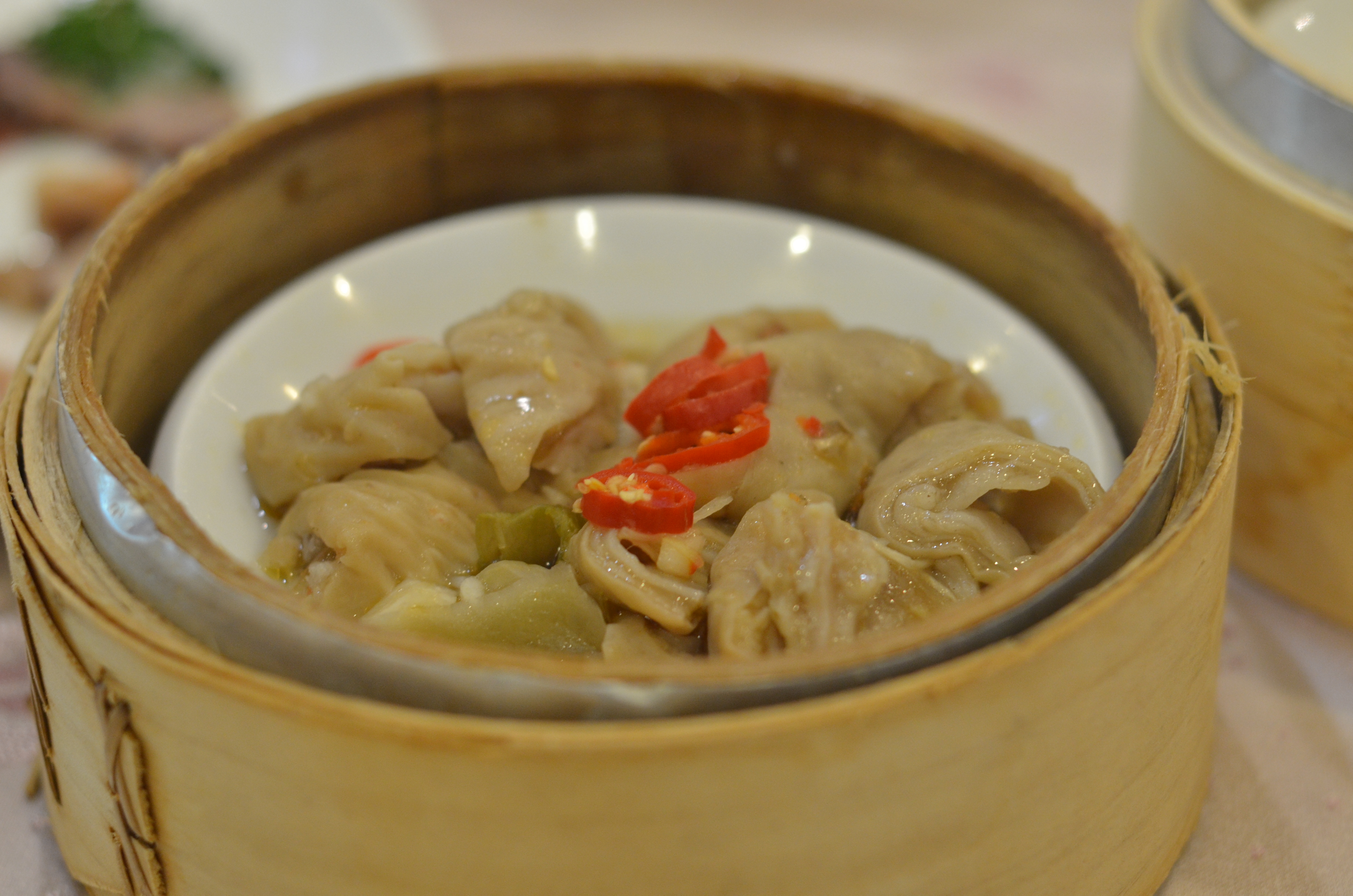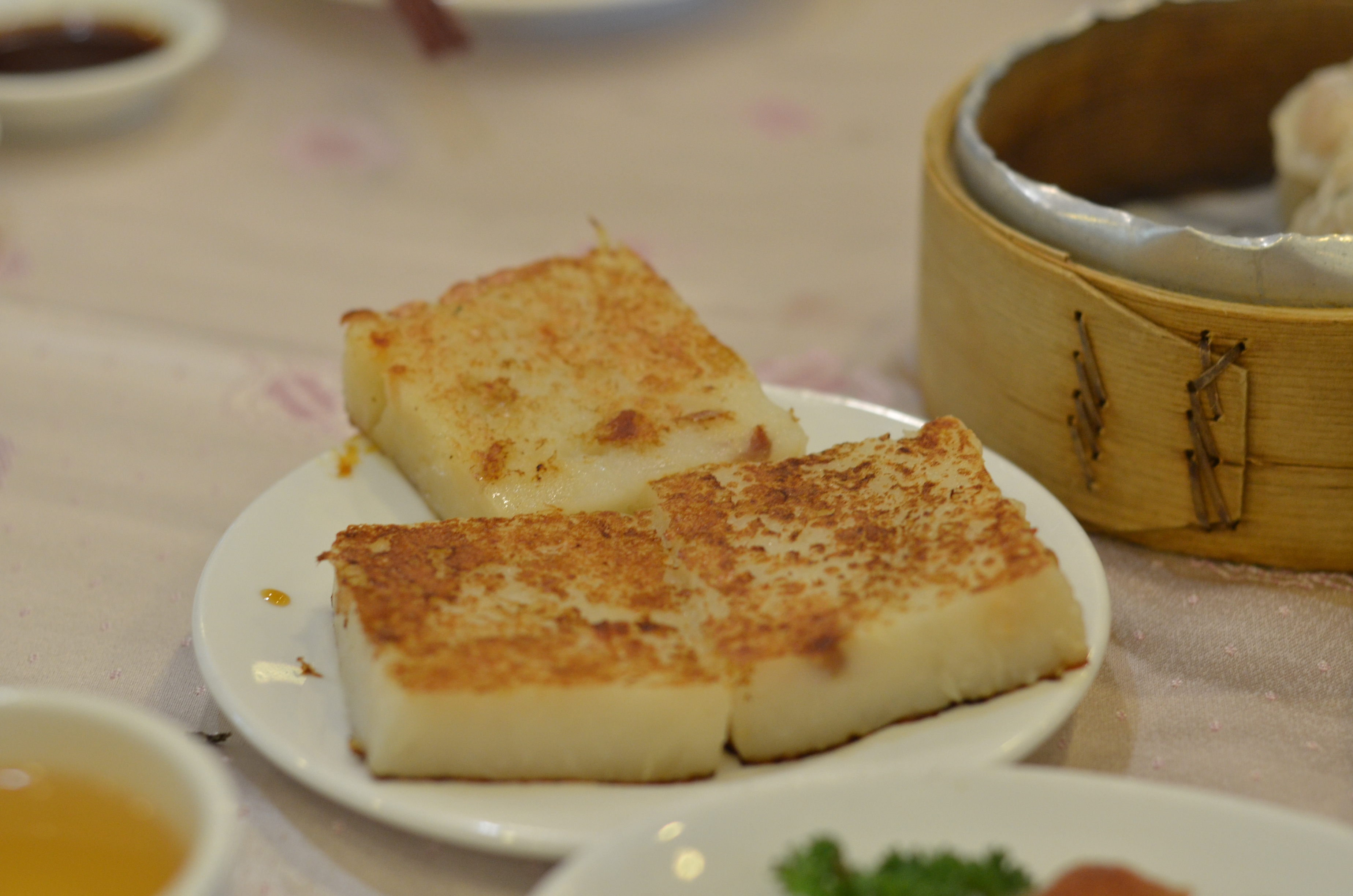 Anyway, back to dim sum, my aunt and uncle ordered a bunch of different dishes including stuff that I've never tasted before like cow intestine and chicken feet! I tried both, and they were okay, though they weren't my favorites. There were many other delicious dishes that I recognized though, such as the shrimp shumai (燒賣) and the carrot cake (蘿蔔糕)!