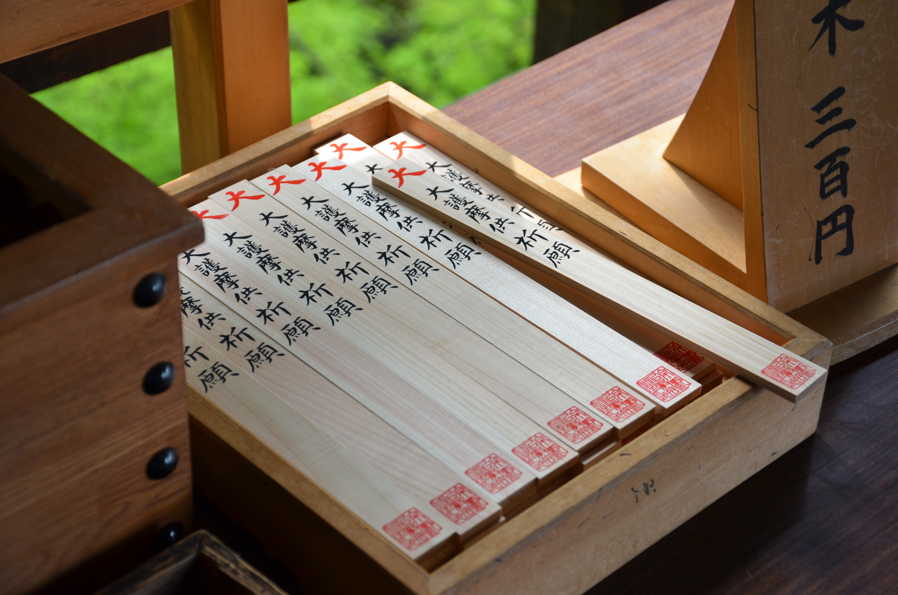 Votive plaques. People purchase them as offerings for their wishes to come true.