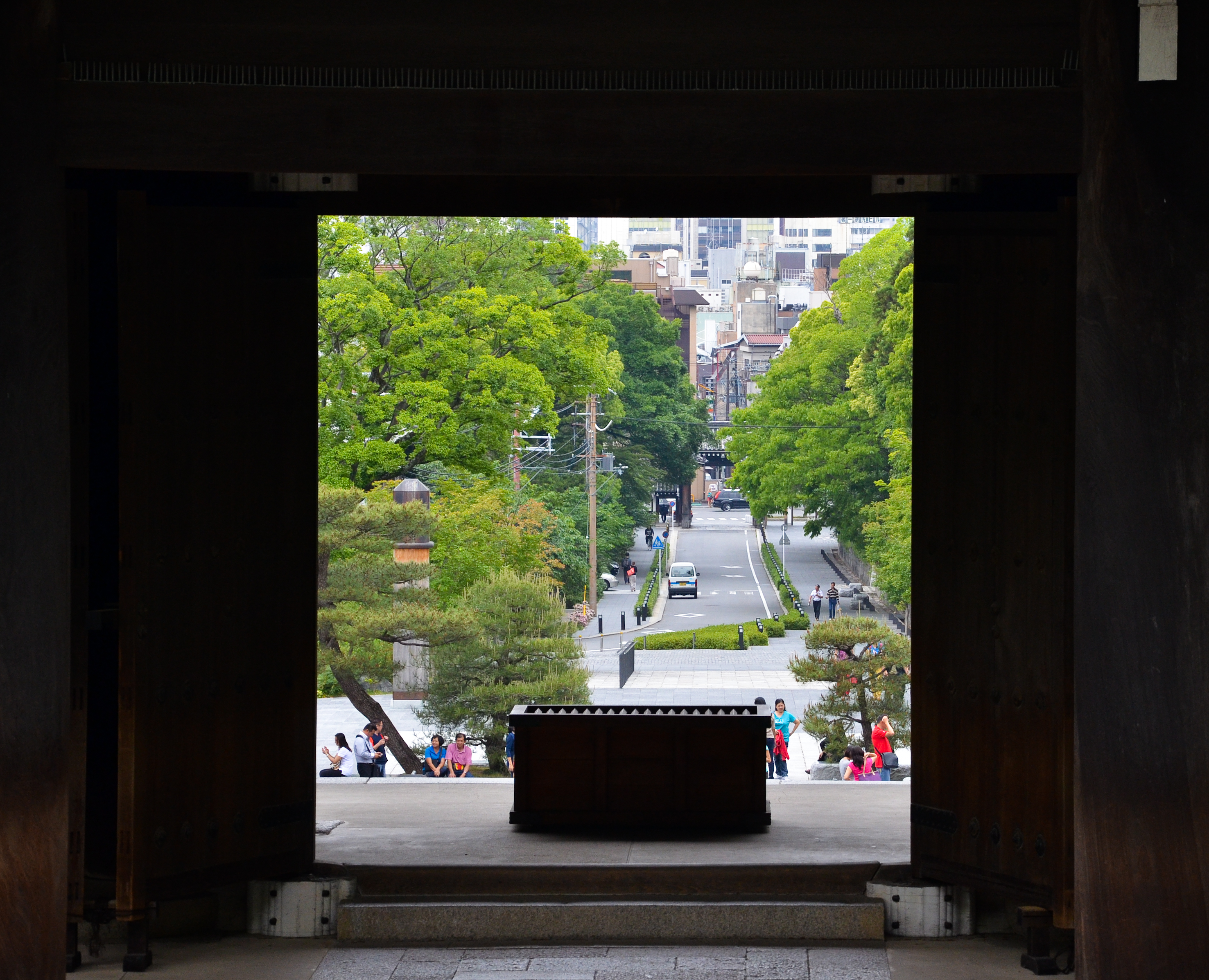 Afterwards, we set off again through the park towards Shoren-in. Along the way though, another temple called Chion-in caught our eye. We originally didn't plan to go there because it was supposedly under construction. It looked mostly untouched though, so we decided to go in. The entrance was huge; the wood pillars that held it up must have been made from very old trees.