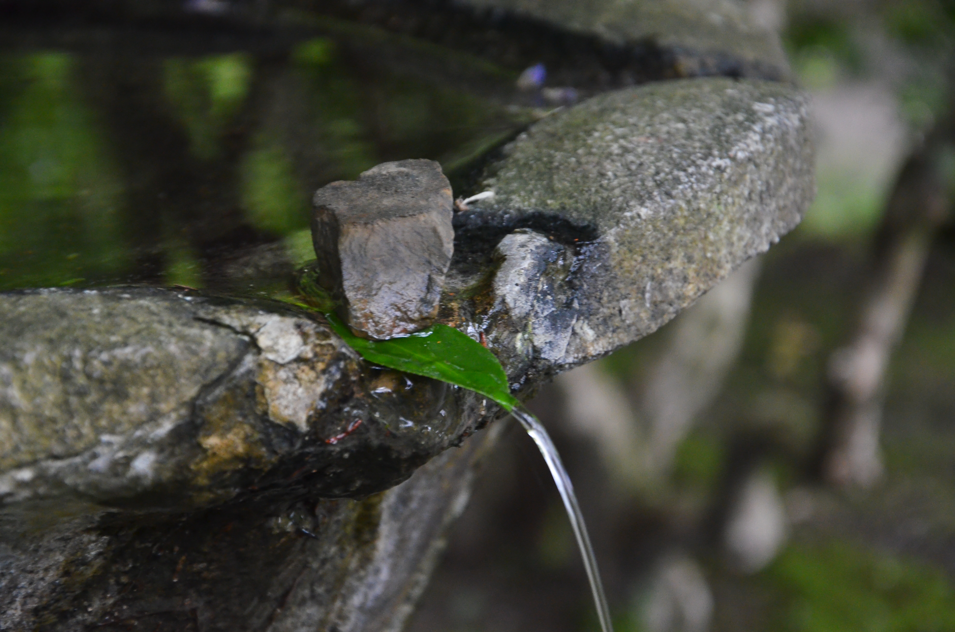 There was stone structure immediately below, with three streams of water pouring over the edge of its roof. People were lining up to catch the water in long metal ladles, then drink it or wash their hands. My grandma and I waited in line as well, and it was worth it. The water must have come from a mountain source, because it was very cold and clear!