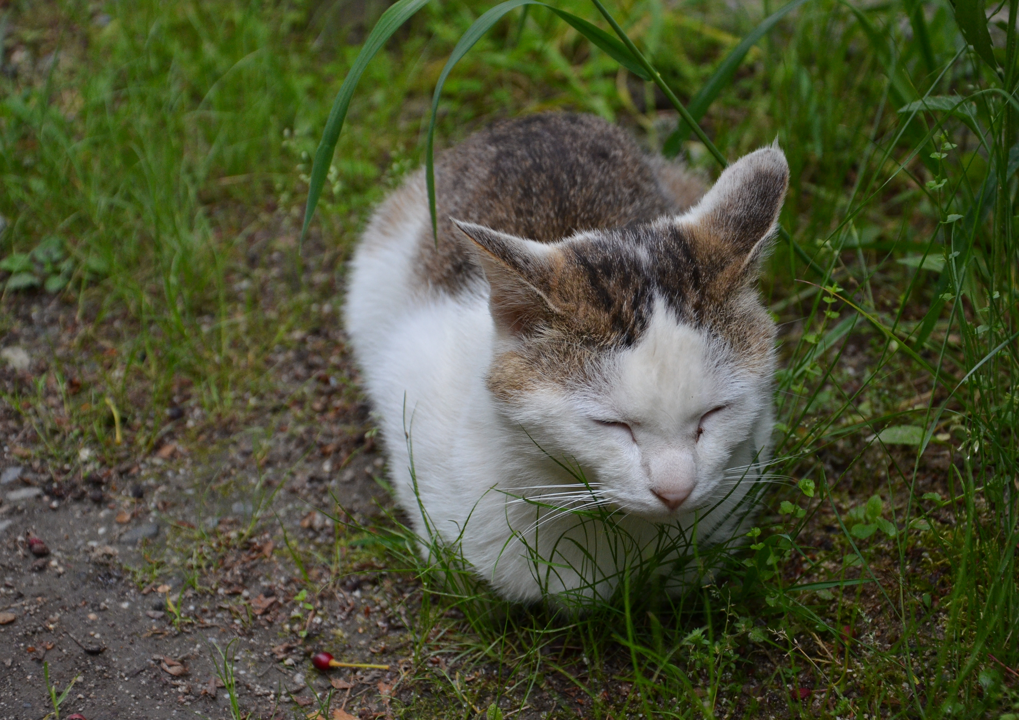 At one point, we came upon a guy sitting on a bench with a huge group of cats around him. When my grandma exclaimed how awesome that was, the guy replied back in Chinese as well! It turned out that he was from Kaohsiung too, but he was now living in Kyoto. He said that the cats regularly come here, and he just happened to take a day off of work today. We moved on and I almost stumbled into a single cat lounging sleepily next to the pathway!