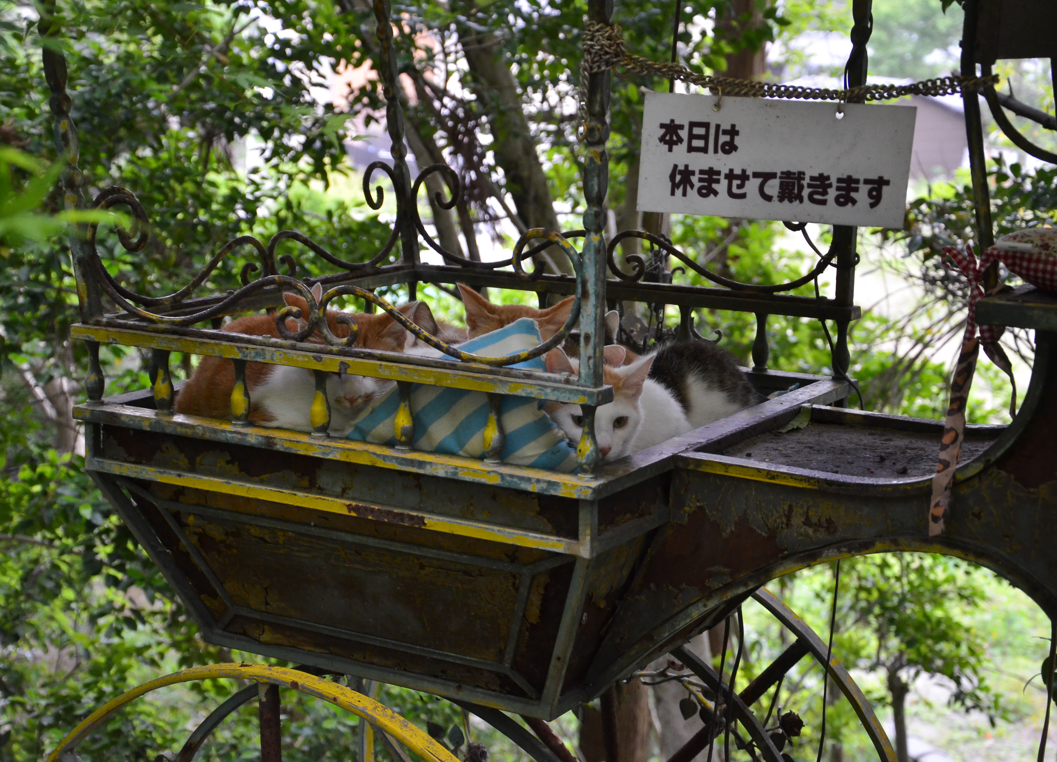 We moved on, but soon stopped again, as I spotted a strange carriage structure complete with cushions...that was full of cats!
