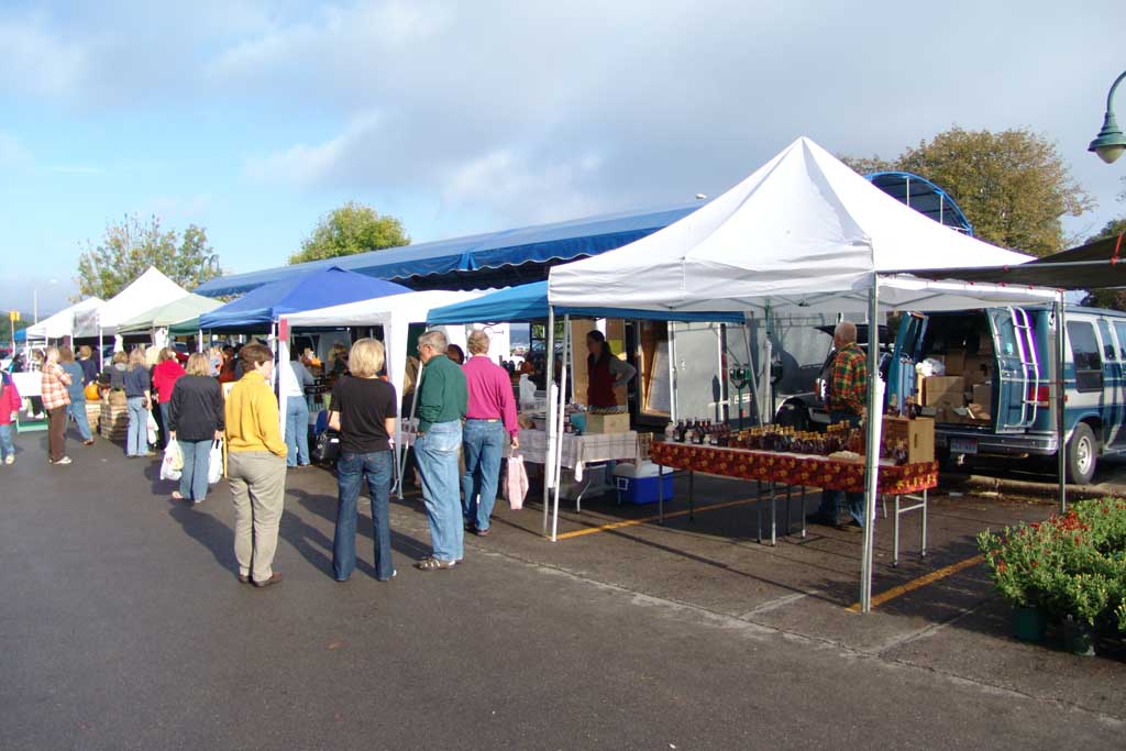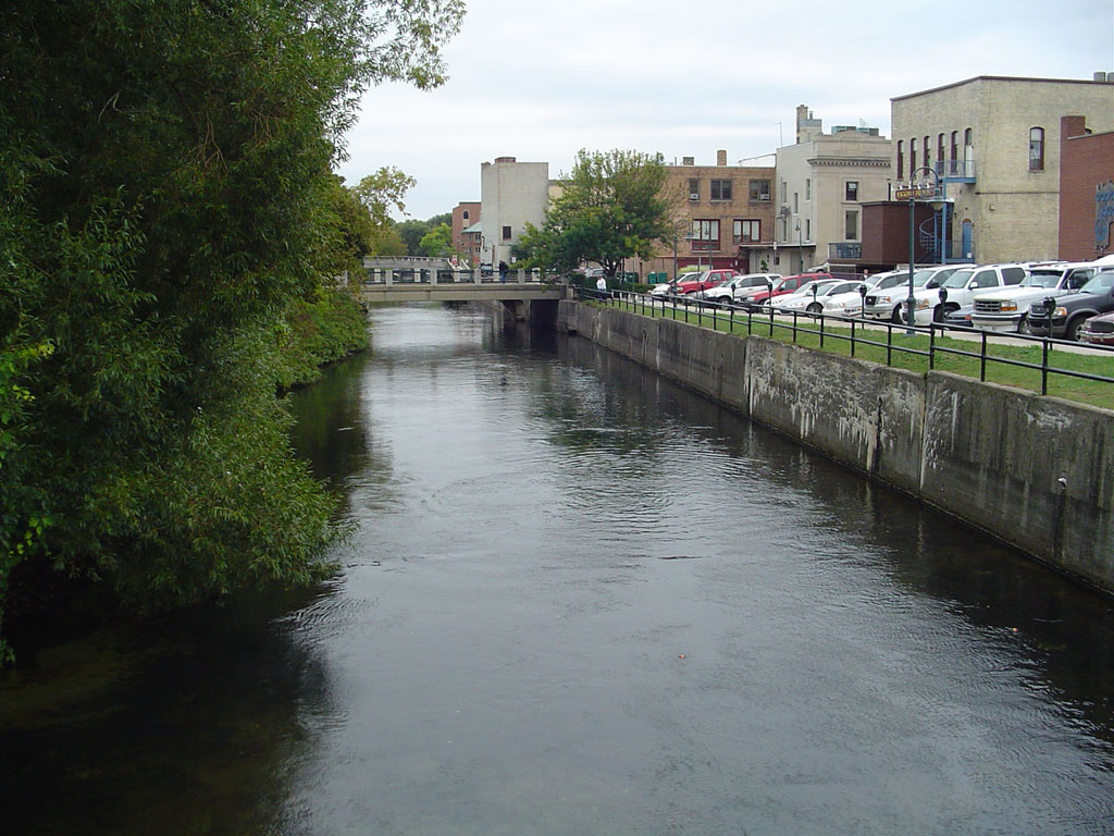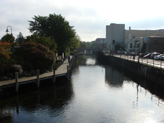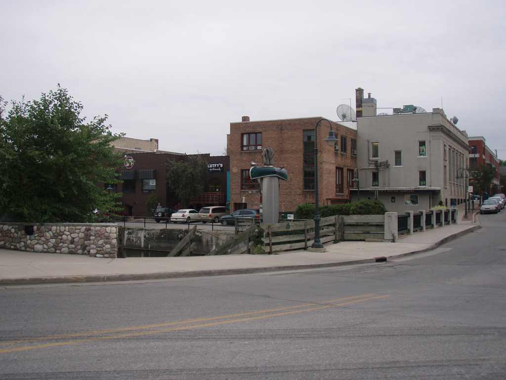 riverbank in the parking lot. The riverbank backs of Front. St. businesses