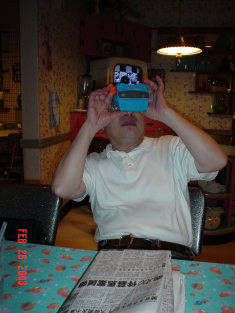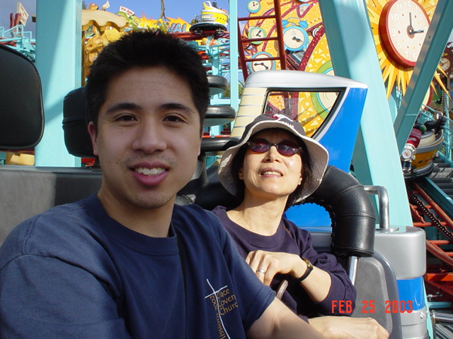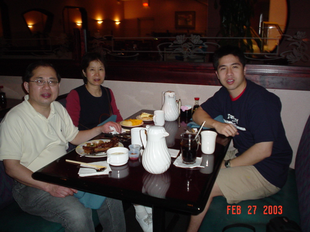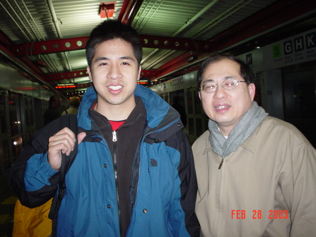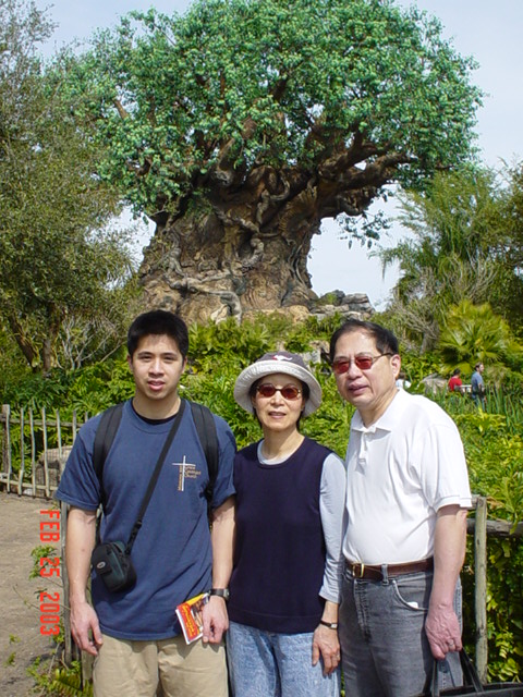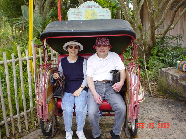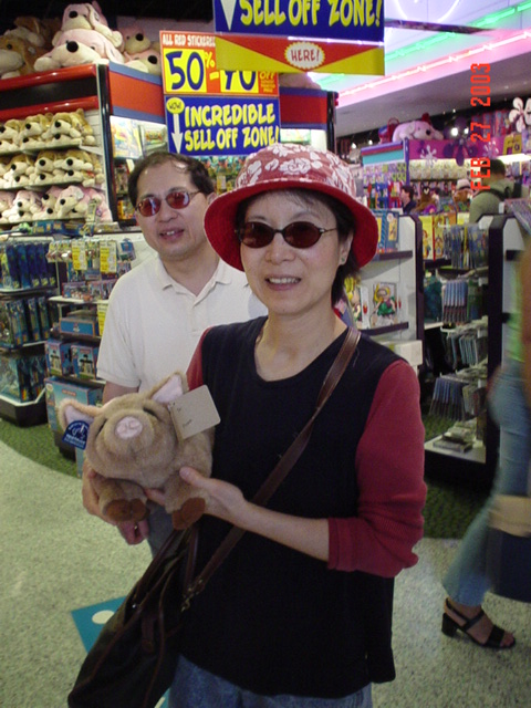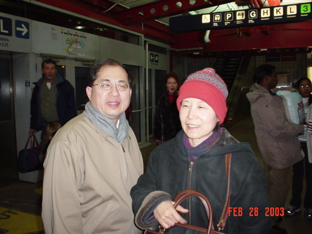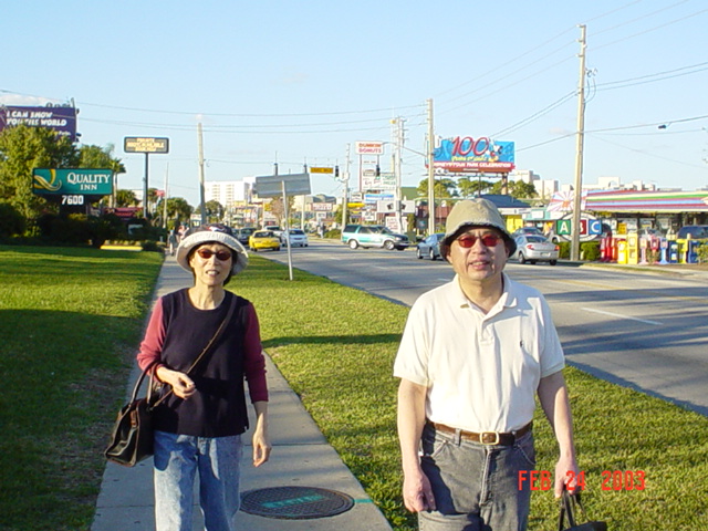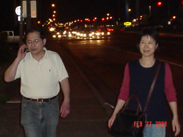 My parents walking down a street. Dad's on the cell phone lecturing Rebecca