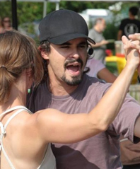 Rueda de Casino, or simply Rueda, is an ensemble (but still unchoreographed!) form of salsa in which lots of couples dance interactively in a circle. It started during the 1950's in El Casino Deportivo, a social club in Havana. Rueda moves are built on many of the kinds of turns and steps done in ordinary 1-on-1 salsa dancing. The dance is directed by a circle leader who chooses the moves on-the-fly and calls them out for the rest of the dancers to execute.