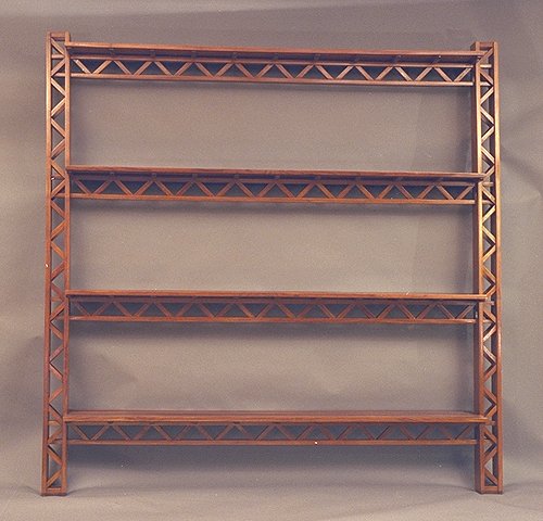 This bookcase is laminated in the style of aircraft spars and, like aircraft spars, it is light and very strong. It holds a full measure of books with a minimum of beam deflection. The shelves can be pulled from the uprights, making the bookshelf easier to move.