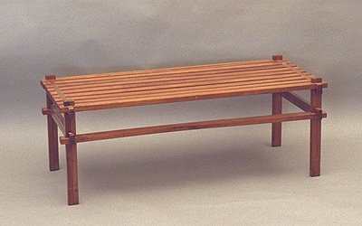 Construction: Sequential joinery. Material: Walnut, oil finish. Size: 19" wide, 41" long, 15" high.