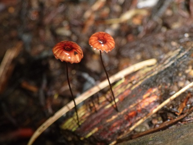 Above. A few mushrooms of the northern Atlantic Forest. Marasmius cf. amazonicus from Mata da Estrela, and Cantharellus cf. aurantioconspicuus from the Caetés Reserve