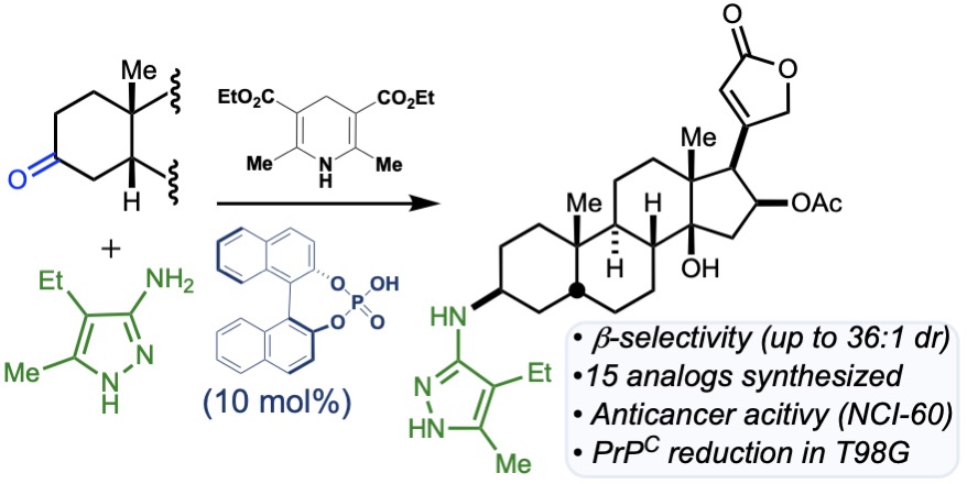 64)Perry, N.; Eid, S.; Schmitt-Ulms, G.;*; Nagorny, P.* "Development of CPA-Catalyzed b-Selective Reductive Amination of Cardenolides for the Synthesis and Biological Evaluation of Hydrolytically Stable Analogs" Chem. –Eur. J. 2025, 31, e202501552. Access Publication Here.