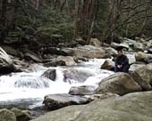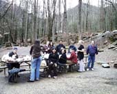 ahhh, more of the open road. four entries for you all today. by joe gonzalez joegon@umich.edu We took off today at 10 am. More truthfully, we took at about 10:30am, after our first lesson in the complexity of group dynamics. Our lesson? In our group of fourteen people, we have precisely fourteen different definitions of "ten o'clock." Some people are convinced that 10 am means 9:55 am, while others think it means 10:15 am. The good news is that we arrived at a compromise: We will set a time to meet, but we will agree that there is a fifteen minute grace period. I am optimistic that our version of The Mayflower Compact will hold. Our little agreement was reached in Knoxville, TN, or more specifically a Motel 6 in Knoxville, our little place of respite on the road to Atlanta. After our brief discussion, we headed east and south - into the Smoky Mountains National Park. We could not have made a better decision. Although it delayed our arrival in Atlanta by (probably) two-to-three hours, it was exactly what we needed. The beautiful mountains, and mist and fog, was such a pleasant break from the mile after mile of strip malls and fast food restaraunts. We ate lunch beneath the mist and a mountain, beside a rapid stream. It could not have been better. As it turns out, we needed the peace and quiet. Atlanta tested our little group's patience . . . with two cruel turns of fate. First, we got lost. The youth hostel (our destination) gave us the wrong directions, and we three mini-vans got lost., touring much of suburban Atlanta in the process. As if this was not enough, upon arrival in Atlanta, one of our "fellow travelers," who shall remain nameless (Alberto Sanchez-Aparicio) locked the keys to one of our vans in the van itself. (Alberto, of course, has much to say about this in his journal entry.) But all was not lost. A quick call, by cell phone, to AAA, and the mini-van was freed within the hour. Tomorrow the meat of the class begins: A visit to the King Center. And I will actually have to start teaching, which I have been able to avoid thus far. As of tonight, I am very encouraged by our little group. We seem to be making friends. People are laughing and joking, taking pictures, and helping each other out. Without much direction from me, they are "gelling," becoming friends and helpmates. I am encouraged. It's a nice thing to see. As Doug Brinkley, whose book The Majic Bus gave me the idea for this trip, has told me: There is just something magical that happens when a bunch of people go off together in search of the American story. He is right. by alberto sanchez-aparicio albertos@umich.edu My name is Alberto, I am an 18 years old freshman at the University of Michigan, in the Architecture program. I came from Lincoln NE, but I am originally from Oaxaca Mexico. I came on this trip because I like history, and I wanted to see exactly where some of the most important events in recent American history took place. The first day went well. I am sure you can read more about if you want. I will try to express my actions for the second day, which for the record was by far the best day on the trip, thus far. It comes with out saying that when 12 people decide when to get up in the morning, someone will innovatively assume that it is ok to get up fifteen minutes later. This little discrepancy was quickly handled by our fearless leader JOE. We then went to pick up some groceries so we could have a picnic in the Great Smoky Mountains. I was the driver for one of the white vans. My co-pilot was Deborah, with Jordan and Zach as passengers. So we headed toward the Great Smokys. On the way, we passed the town with lots of interesting attractions some of which were Dollywood, and square dancing. We stopped to get info, at a ranger station at start of the mountains. The weather was a little cool, and overcast, with occasional sprinkles. In the van we were listening to A Tribe Called Quest, one of Deborah's tapes. The mountains were spectacular, reminding me of my home back in Mexico. The river was especially meaningful, because on the farm of my uncle, there is a river where my cousins and I used to play. We stopped in a picnic area and had lunch. We had sandwiches and lots of cookies, along with pop or apple juice. It started raining so we had to quickly pack our stuff, which was unfortunate because we also wanted to go on little hike in the park. In the mountains the weather made a turn for the worst. The visibility was about ten feet, and it started to rain really hard (Deborah was driving). The road was mostly one lane, no passing, which was the only thing that kept us together. I was driving when we entered Atlanta. The weather changed dramatically as soon as we left the mountains. When we entered Atlanta the weather was great, and pretty close to dusk. The warm colors of the sun reflected off the skyscrapers, making them eve more majestic. It was unfortunate that I only got see quick glimpses of this, because the traffic was heavier than anything I had ever seen, and I had to keep the other vans in sight. We also got the wrong directions, so we were lost for a while. Anyway, we finally got to the hustle, where we met up with the other two members of our party ( Alyssa and Natalie). In the pandemonium and excitement of moving into our rooms, I neglected my duties and locked my self out of the van I was driving. I really don't know how I did it, because I am usually careful about such things, but the keys ended up on the front driver seat, teasing me as I tried to open the doors. So we had to call AAA, and get them to open the van. I felt like an idiot, but no body really gave me too much grief over it. We took pictures, which will be posted up later this month. After that I meet up with the rest of the group for dinner, and came back to start writing this entry. Hope you enjoyed my point of view, and the web site. --beto-- by mimi belton beltonm@umich.edu I dozed off in the van today. We had had a nice li
