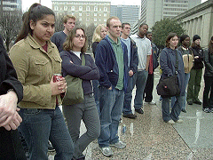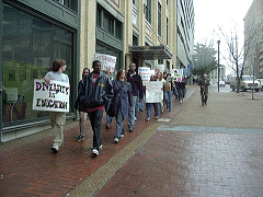 Our next stop was the "protest" with Kwame Leo Lillard. The war protest was in progress when we arrived and it was quite a scene to behold. There were these two people dressed in purple dancing, a group of women wearing black remaining completely silent, and there were those people that Pete and I met earlier. Everyone got a chance to speak including Mr. Lillard and Joe. It ended with one of the men who had been sleeping outside the capital giving everyone a hug and he smelled as though he had been sleeping outside for a week.