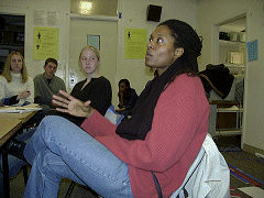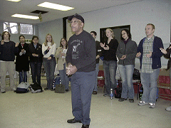 |  Hollis Watkins leads the class in a freedom song. |