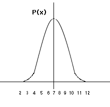 A die is a random variable. We have no way of knowing what value it will take, but we know that it can take only one of six values (1-6). It has an equal chance of taking each value. If we are rolling two dice, we know that there are only a certain number of sums that can be found (2-12), but there is no longer an equal chance of obtaining each outcome. However, since this process is still composed of random variables, we can mathematically predict the probability of different outcomes. This probability distribution is Gaussian in form: