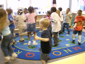 Not all WOW time is about listening, though! As children think and talk about the new things they are learning, new experiences work their way into circle time. Below, a teacher's class is learning about exercise and how it makes your body feel. How long before they can't jump anymore?
