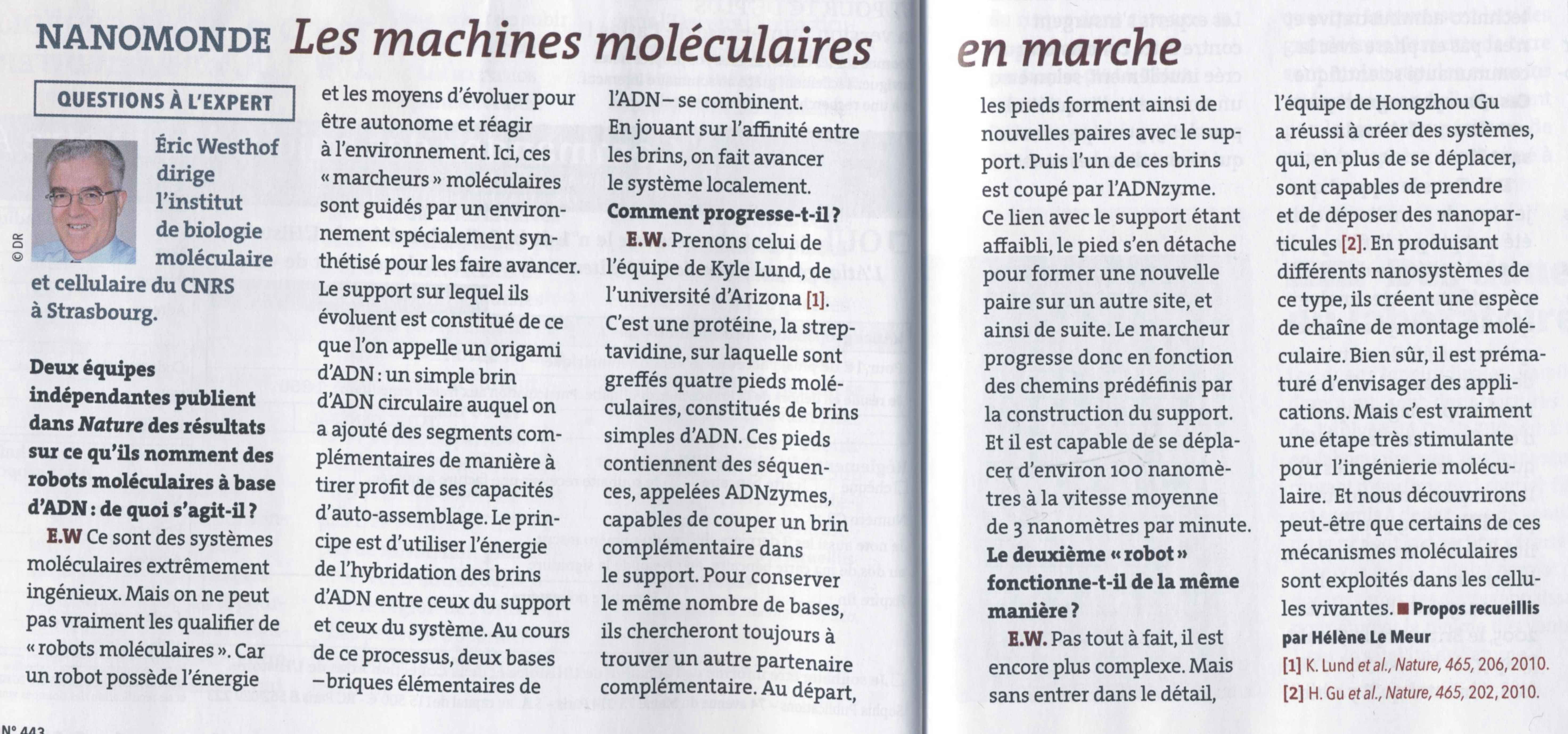 La Recherche, Juillet-Aout 2010 -- "Les machines moleculaires en marche"
