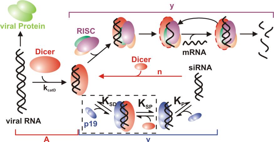RNA interference (RNAi) is a recently discovered mechanism of gene regulation that demonstrates an important function of noncoding RNAs. This system utilizes small double-stranded RNAs as a guide to target mRNAs in a sequence specific manner and repress the encoded gene. These double-stranded RNAs are either encoded in the genome as hairpins and termed microRNAs (miRNAs) or originate from exogenous sources such as a virus and termed small-interferring RNAs (siRNAs). The miRNAs or siRNAs are created from longer RNAs by the enzyme Dicer and then loaded with the protein Argonaute to form the RNA-induced silencing complex (RISC) that will lead to repressed translation of a target mRNA. There are still many questions remaining about additional protein players involved in this pathway and the mechanisms of action at each step. We are trying to further understand this system through the following projects: