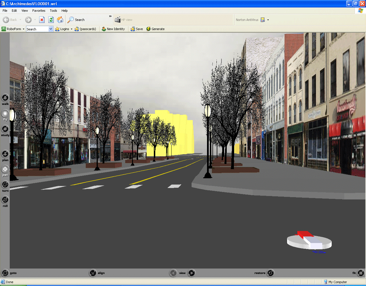 Animated sequence of screen shots taken from three linked virtual reality models, above. To get the full experience, enter the scene and drive around! |