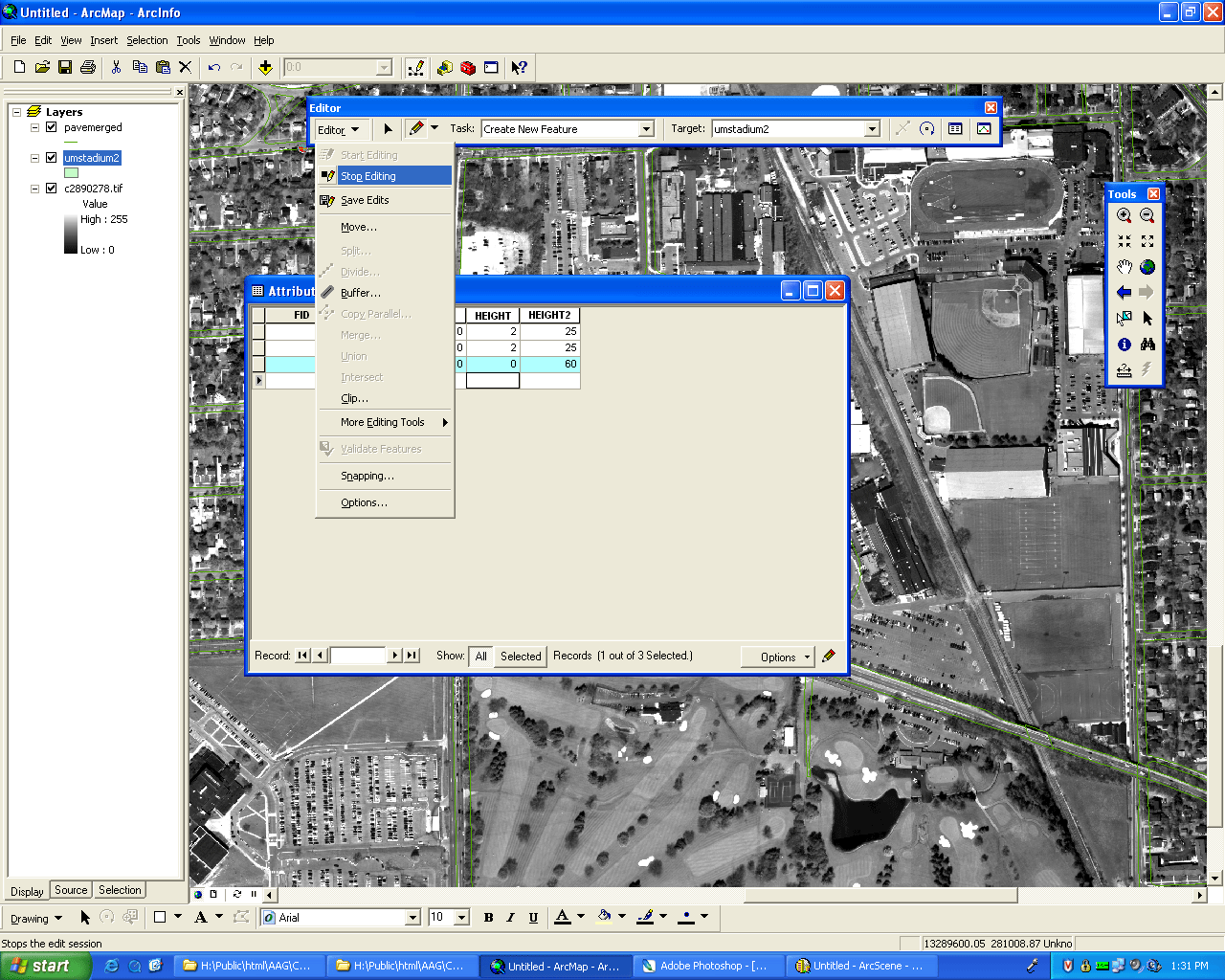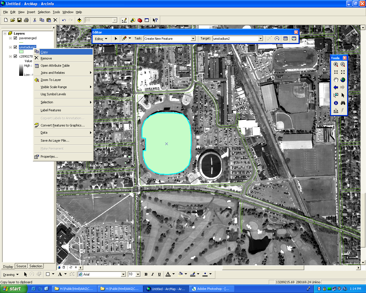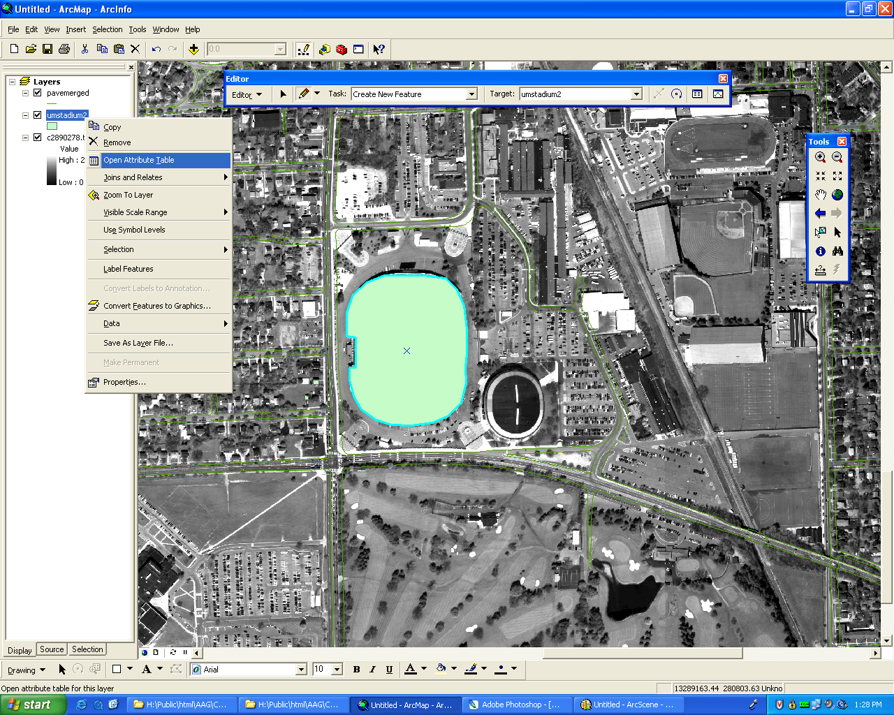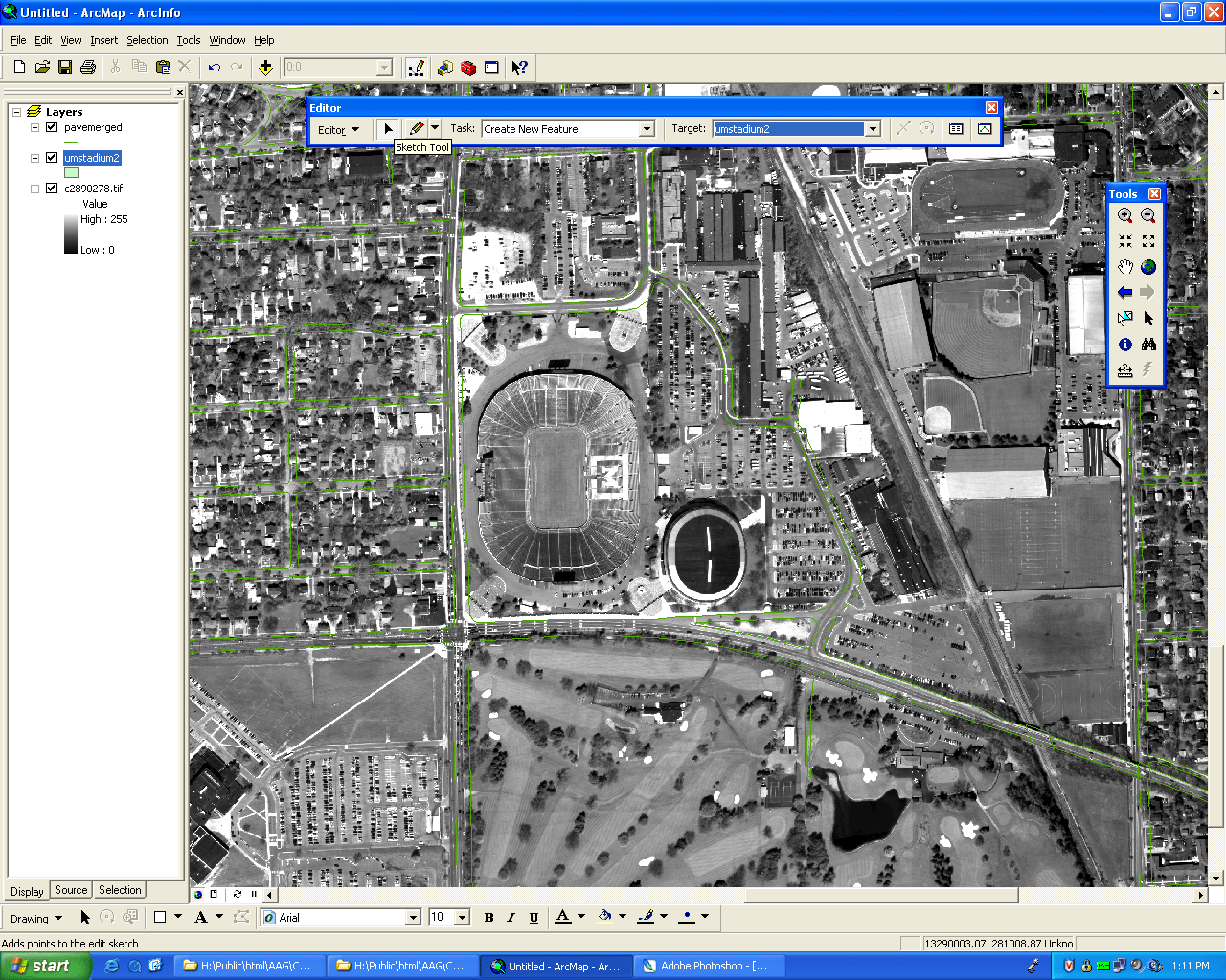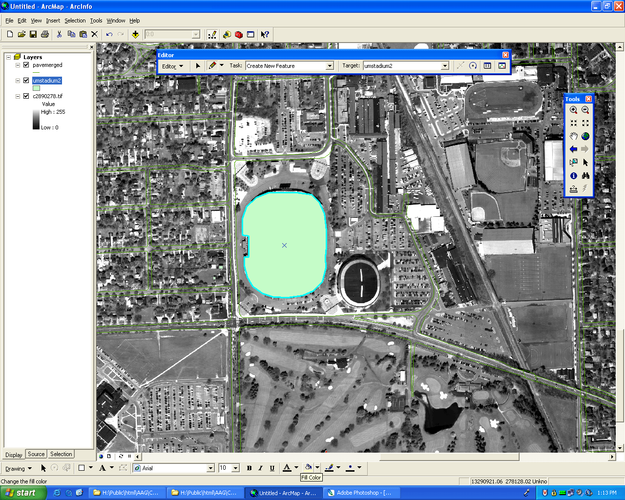 ARCMAP: DIGITIZE THE STADIUM--FIGURE 3 TO FIGURE 8.