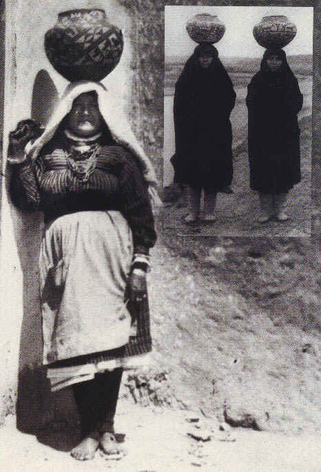 cryptically shrouded Pueblo women bearing pots, meeting customers at the train or