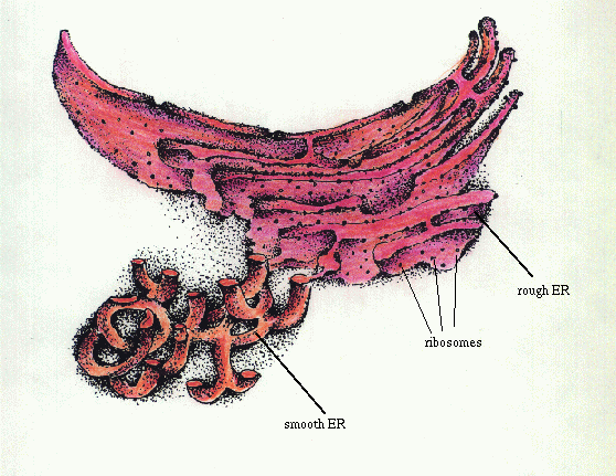 The endoplasmic reticulum was designed to carry protiens from the nucleus to the various organelles in the cell. Though some cells can produce their own protiens (such as the mitochondria and chloroplasts), they still need instruction from the nucleous itself. This is where the endoplasmic reticulum comes in. After the nucleous manufactures the protiens, it sends them along their way to the organells by way of this membrane.