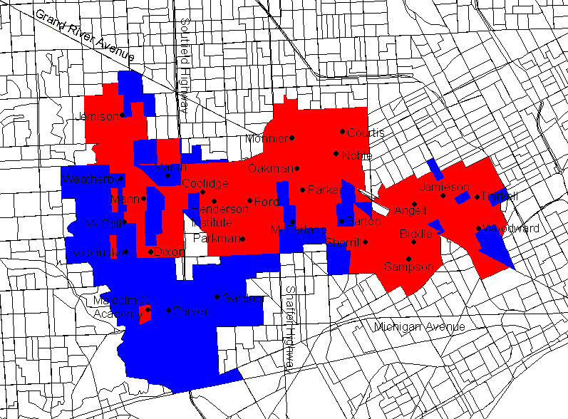 29% of the block groups (neighborhoods) had a majority of two parent households. These were concentrated along the Southwest side of Area 'B'. The other 71% of the block groups had higher numbers of single mother households than two parent households. These other block groups were closer to inner city Detroit.