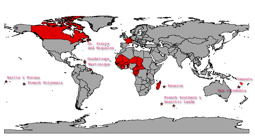 Click here to see an animated map of the French influence throughout history.* What countries still retain this influence?