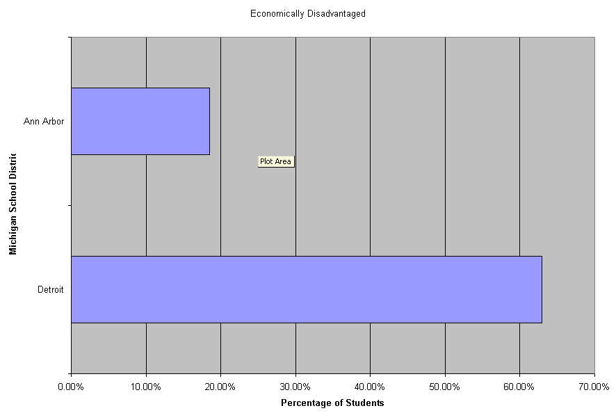 Which school district has a greater percentage of economically disadvantaged students? Why is there such a large difference between the two communities?