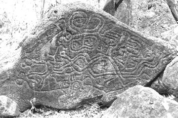 The curvilinear meander is the most common large motif, and can incorporate loops, spirals, and wandering lines. The meaning of such motifs is unknown.