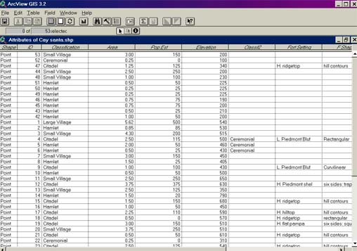 I have not attempted to make estimations of the degree of error. However, I compared the intersite distances between the scanned image and the registered map, and they often come out to be less than 0.01 km. It should be noted that the purpose of this analysis is to obtain broad spatial patterns between the sites, rather than providing future archaeologists who wish to re-discover these sites with the exact geopositioning information.Finally, data pertaining the size, type, and population estimate for each site were entered. If the site was a citadel (defensive in function), then more detailed information, such as shape of fortification, number of walls, etc., was included in the database. These data could be found on pg.536-540 in Wilson's report.