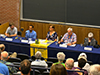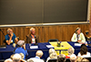 20180615-0830-Scientists-Symposium-0853 Steve Bayne on panel of "Alumni Scientists' Symposium - Preparing Leaders in Science and Medicine "; Jim Hamann (back of head), Dwight House (back of head) in audience (6/15/2018) |