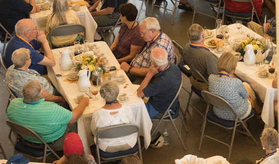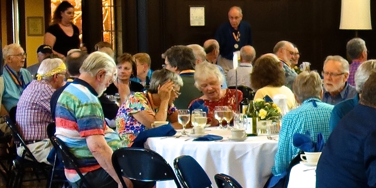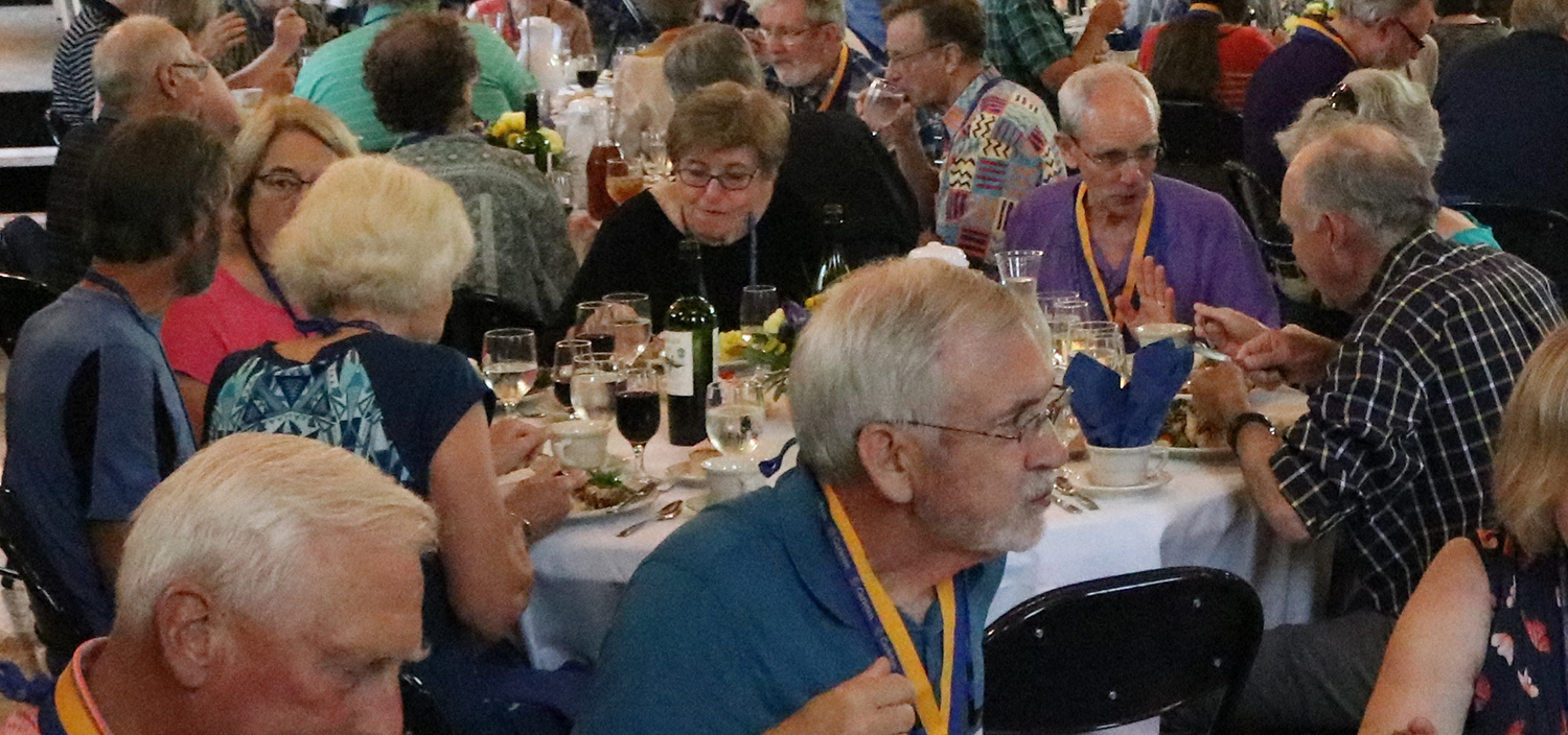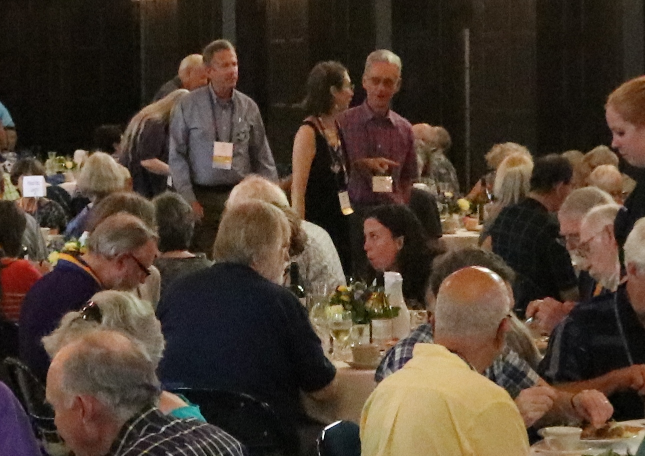 20180615-1830-Dinner-1852C Alan Garten, Dave Peterson, Marlene Halverson, Paul Wagschal, Larry & Barb Windschill Sommer, Leigh Stiver & Ron Bogard, Ann McCree, Tom Fabel, Patty Wheeler, Nancy Foster, Barb Ray, Karen Erickson - tables at Friday night dinner (6/15/2018) |