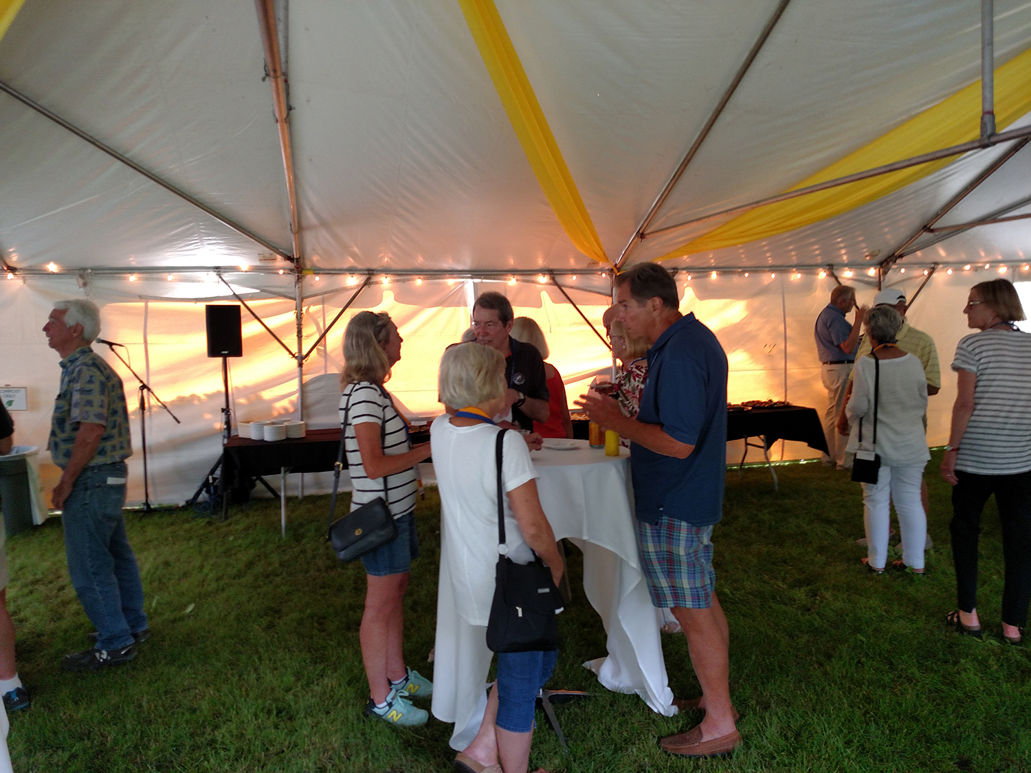 20180615-1700-Watson Reception-1737 Tom Kenyon, Doug Campbell, John Beukema, Margaret Palm Wyatt '69 (Bruce's wife), Kathy Ross, Chris Friess, Cay Buser, Ballard Smith, Barb Windschill, Jeff Musman & Lynne Spencer, Rick & Debby Levinson, Linda Jorgensen, Liz Weikart & Gary Sundem '67 - reception in tent behind Watson (6/15/2018) |