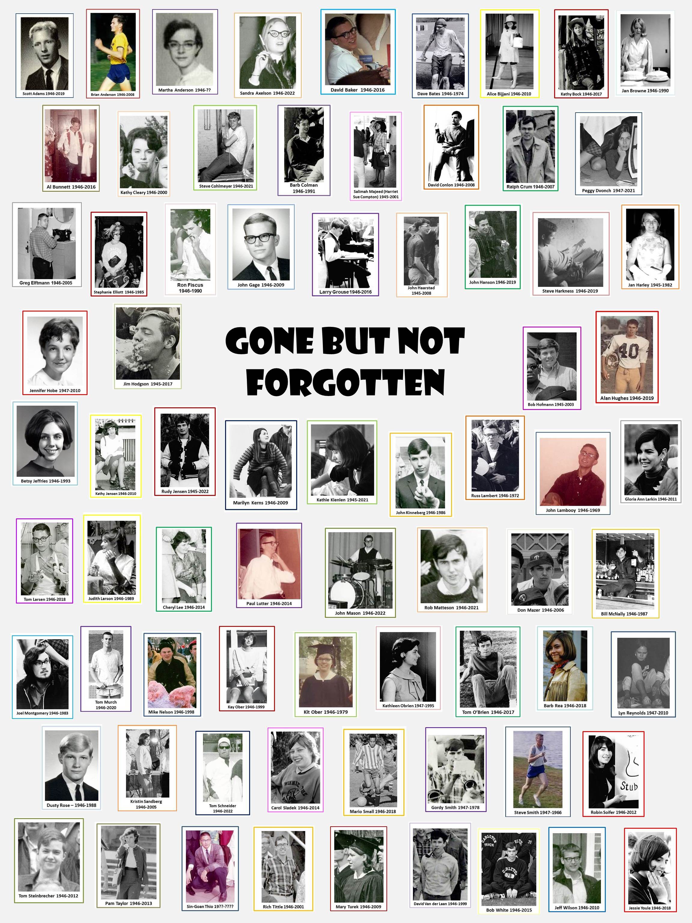 2023-55R-0011 "Gone But Not Forgotten" poster including a photo of each known deceased classmate - Thursday afternoon (6/15/2023) |