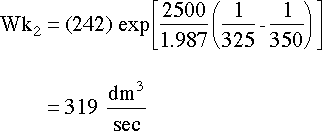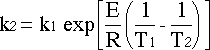 Now we can solve for catalyst weight and the rate constant for the PFR, but we still need some way to relate the two reactors. Looking at the information given, we see that the two reactors are at different temperatures. The way to realate two equations at different temperatures is through the Arrhenius equation :