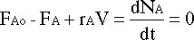 Since FA is the conversion, X, times the entering flow rate, FAo, the equation can be rewritten: