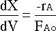 Dividing both sides by the catalyst bulk density gives the conversion with respect to volume: