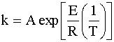 The reaction rate constant, k, is dependent on temperature according to the Arrhenius equation: