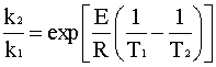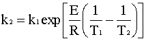 Since the PFR is at a different temperature than the CSTR, we need to relate the two rate constants. The easiest way to do this is to divide the second rate constant by the first rate constant: