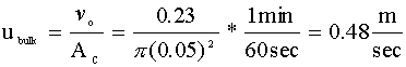 We need to calculate the superficial velocity of our fluid (ubulk). To do so we will assume the volumetric flow rate (vo) stays constant throughout the reactor: