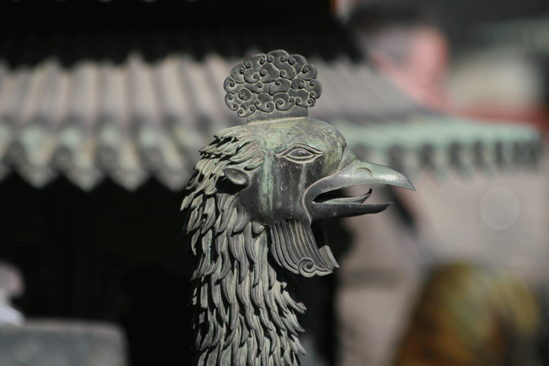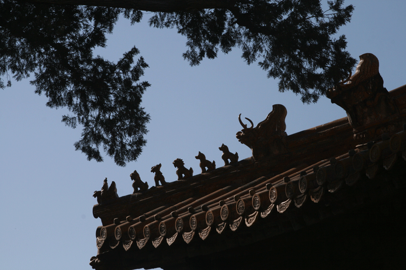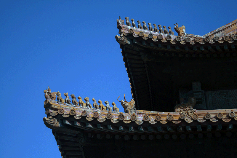 | The number of beasts indicating the importance of the duties performed within the building or within the courtyard protected by a gate. The maximum number of beasts is nine, including evil-dispelling bull, courageous goat-bull, wind- and storm-summoning fish, mythical lion, auspicious seahorse, heavenly horse, lion, and chiwen (a son of dragon). | ![]() |